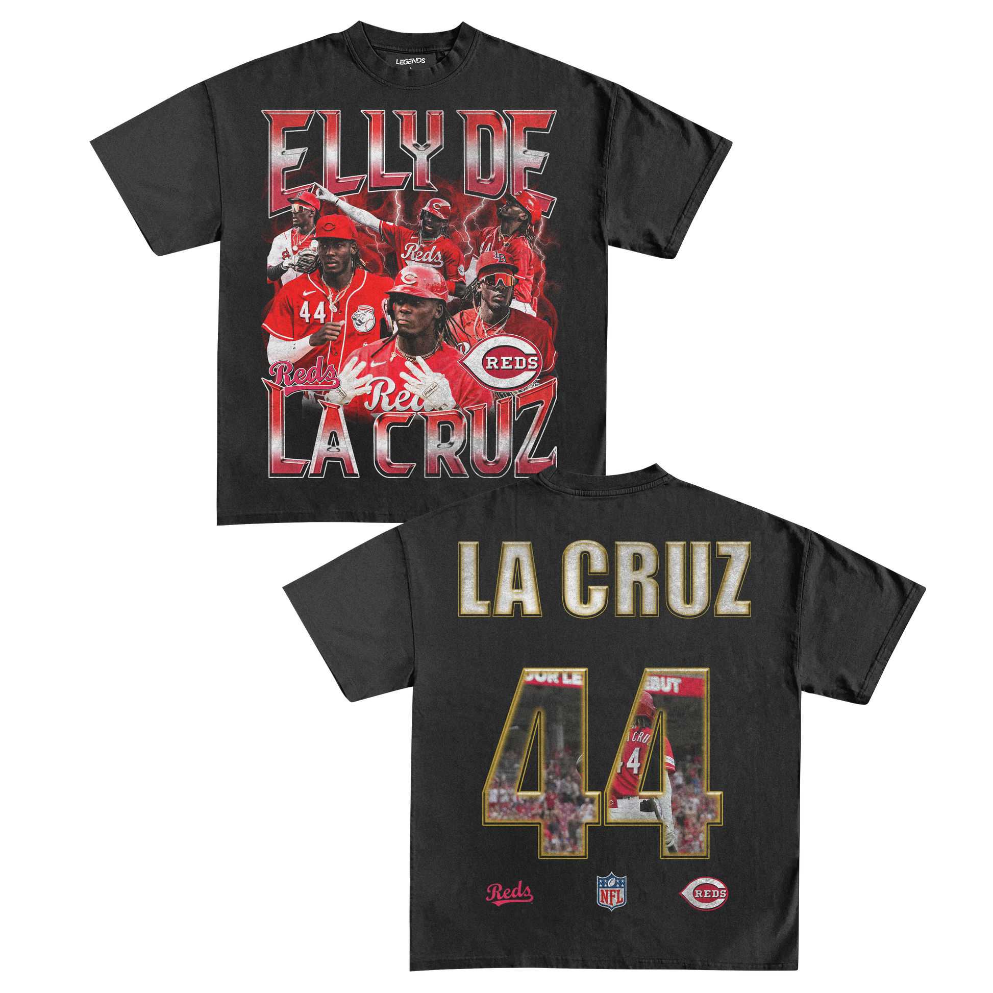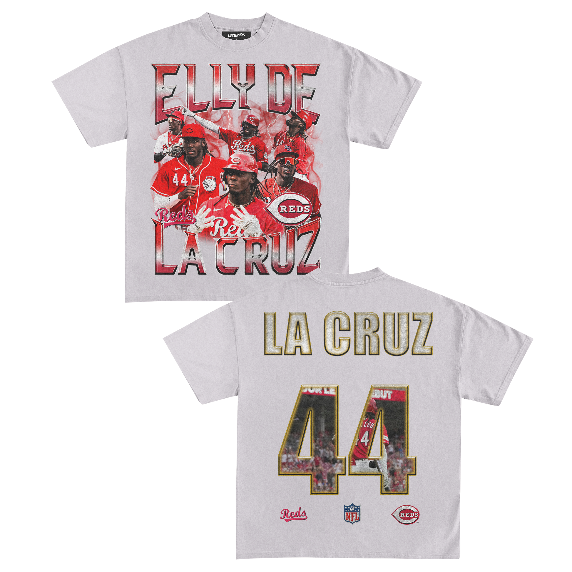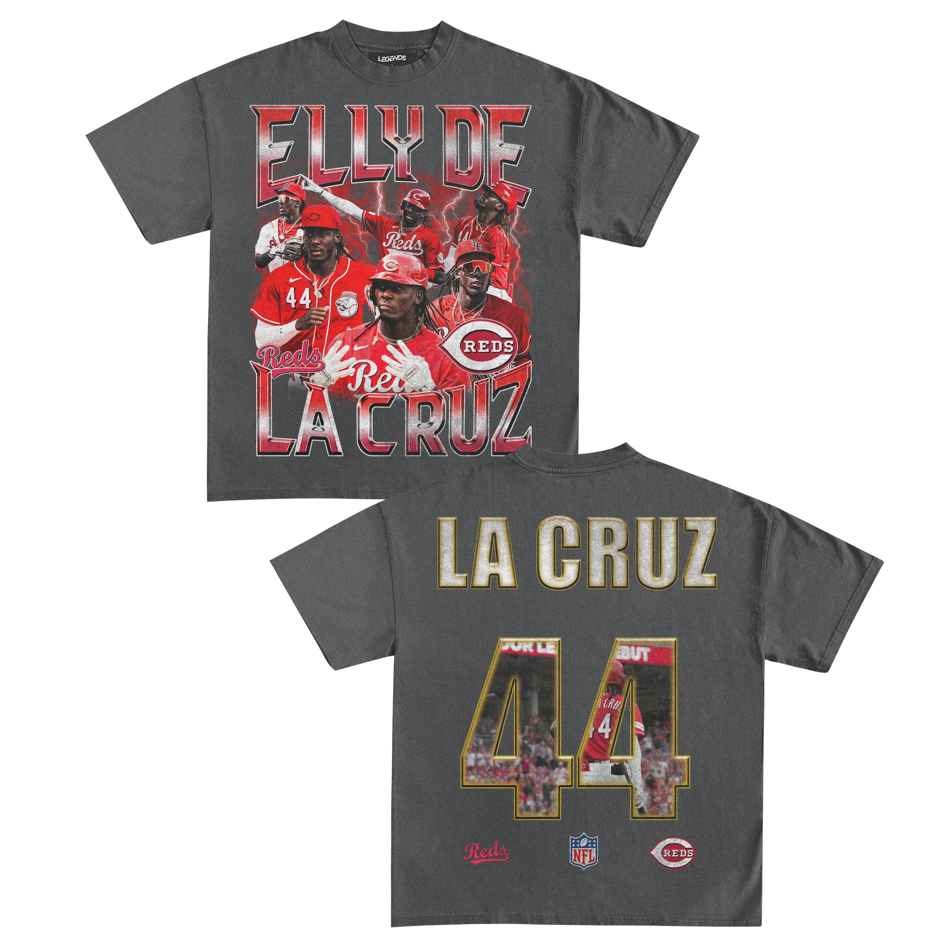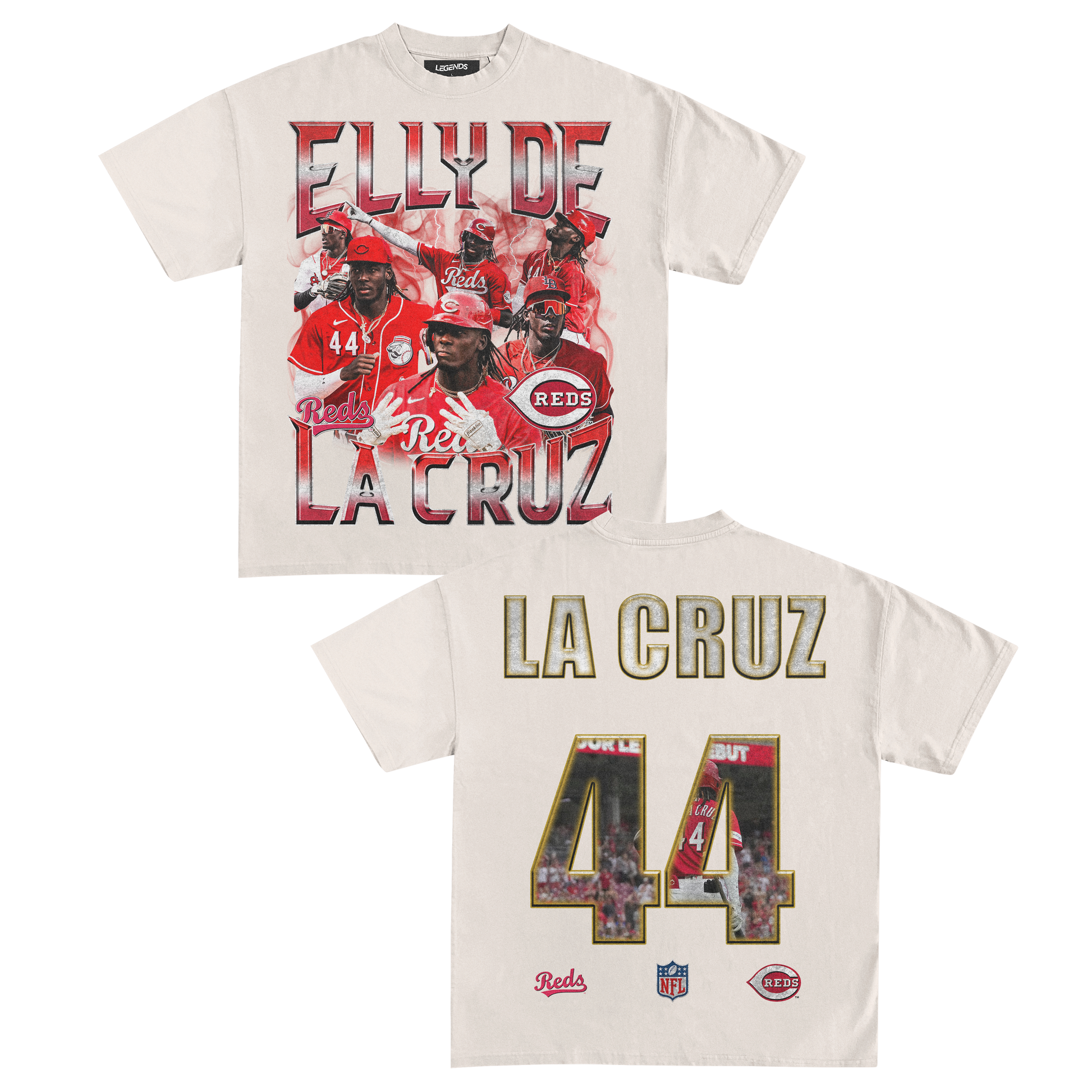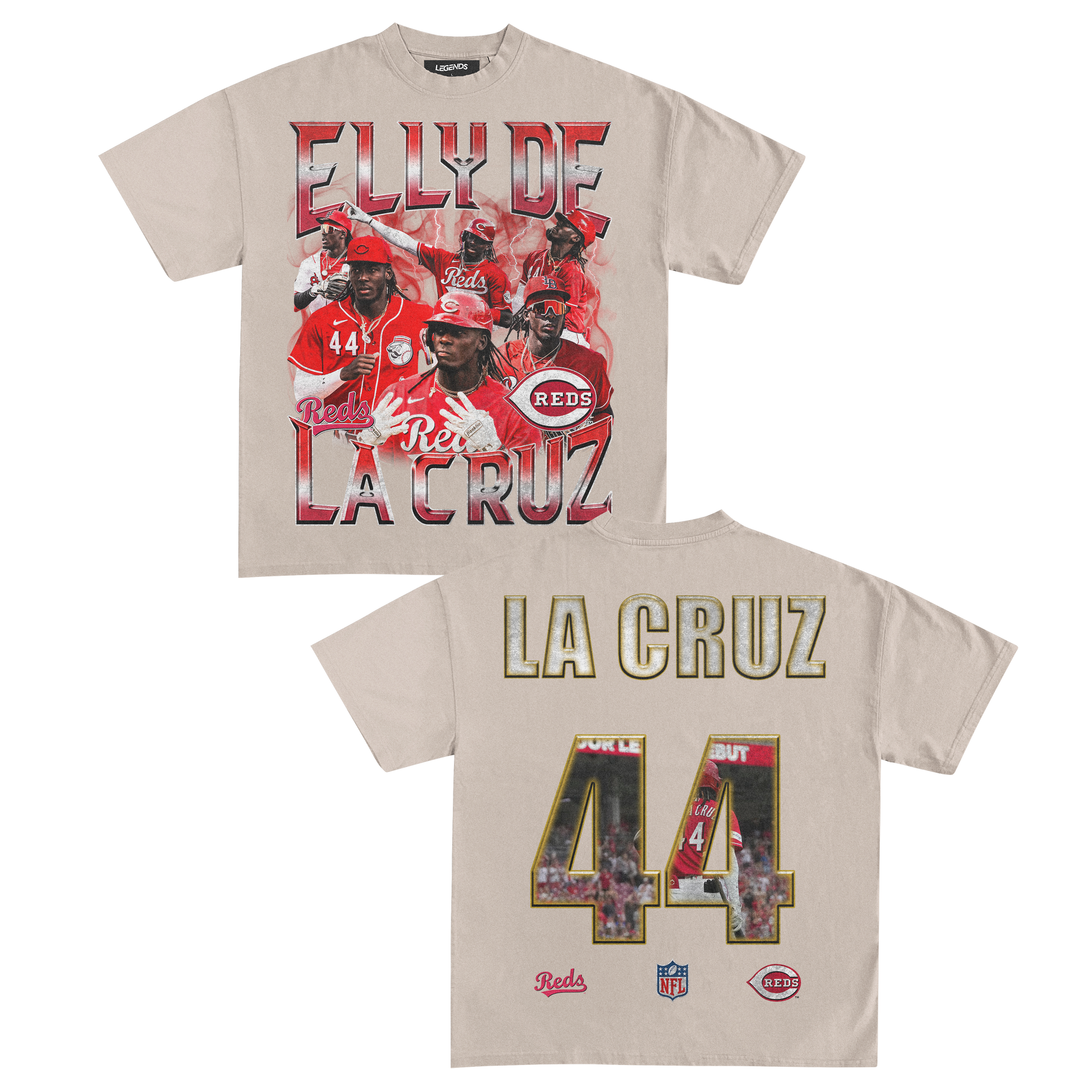 Step up your game with our exclusive Elly De La Cruz vintage heavyweight tee! Embrace the electrifying legend in the making, who's tearing up the MLB with unmatched speed, arm strength, and talent. From breakin' records to dominating on the field, Elly's makin' a name that can't be ignored.