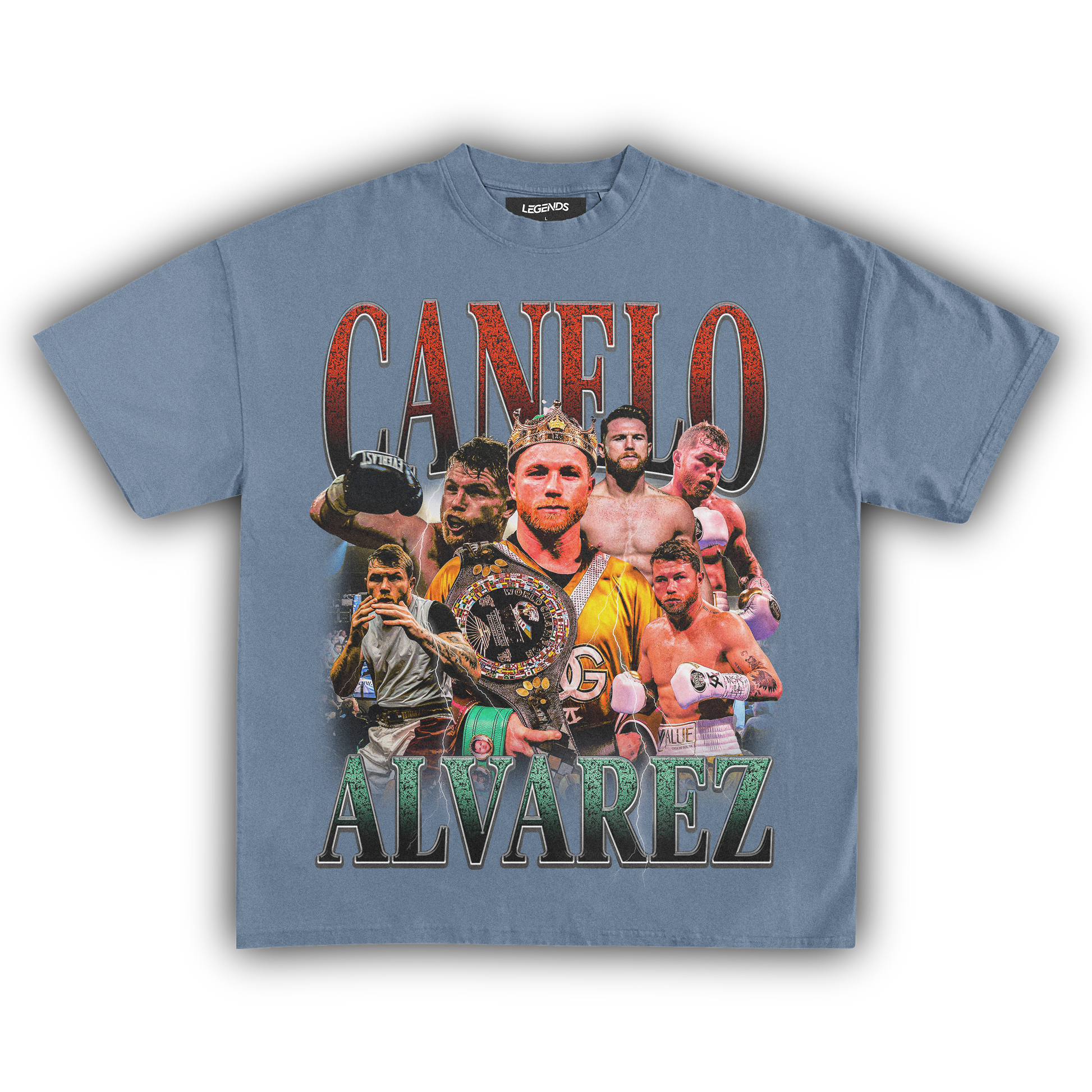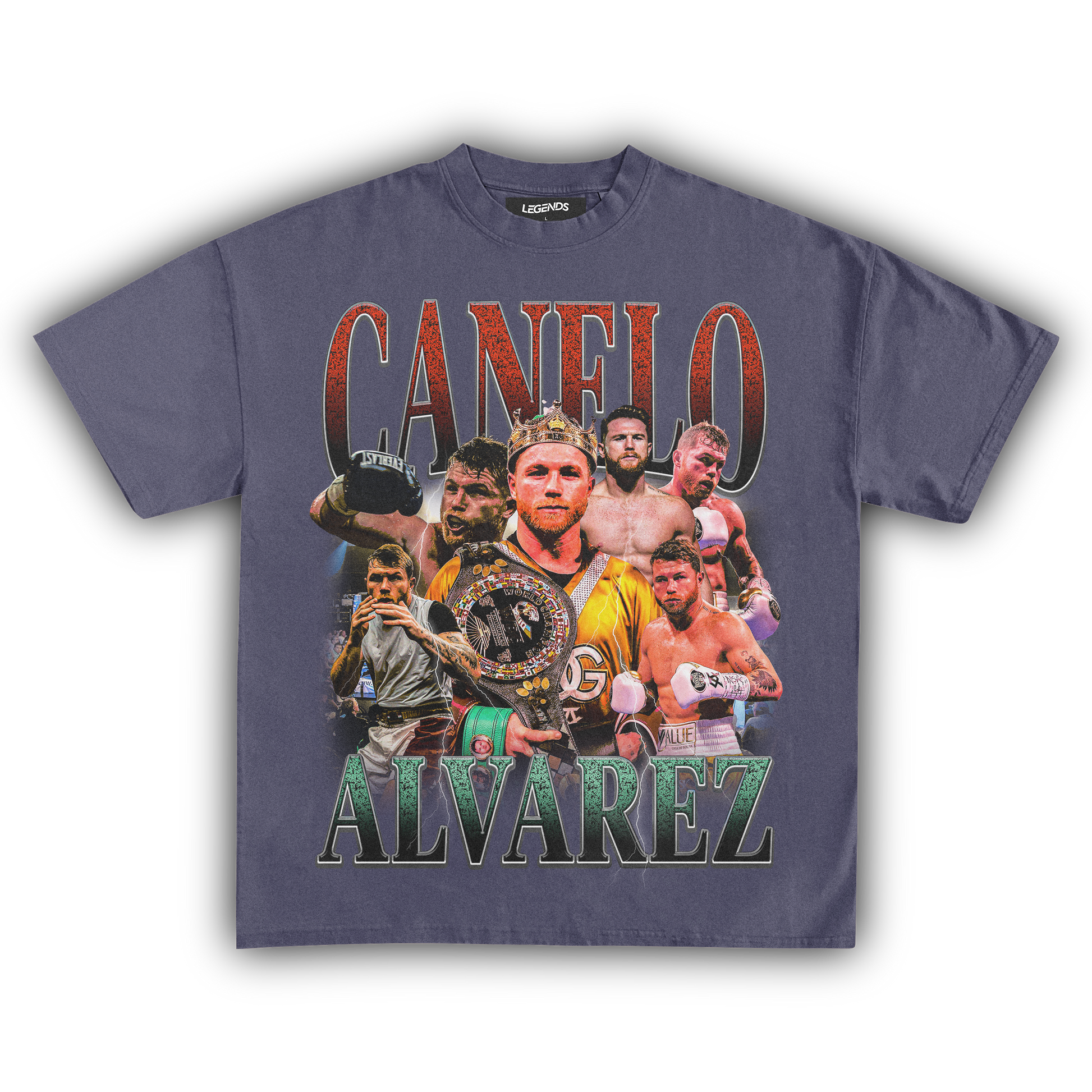 Our vintage tee pays homage to Canelo's remarkable journey. With a design inspired by his Mexican heritage and the boxing gloves that have paved his path to glory, this tee encapsulates the essence of a champion. The bold colors and iconic imagery reflect the strength and charisma that define Canelo's persona.