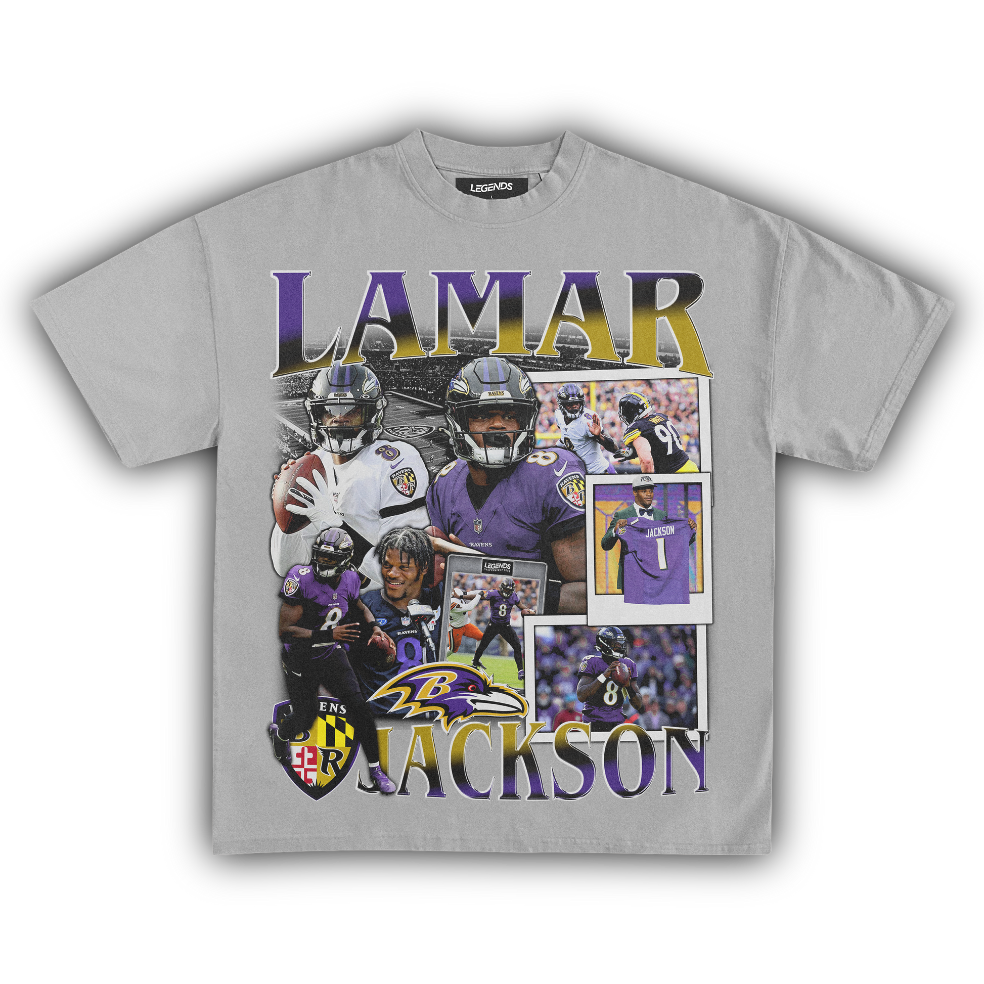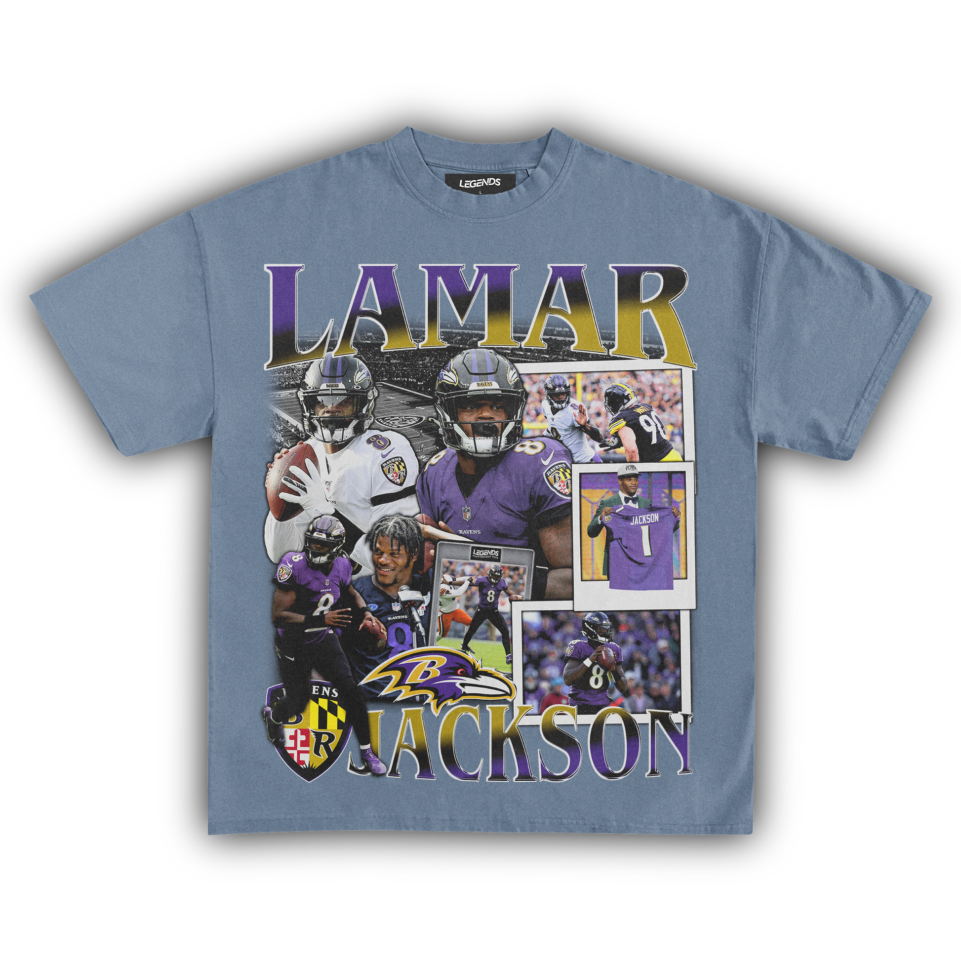 Our heavyweight tee embodies Lamar's fearless style. Crafted with streetwise swagger, it's not just apparel; it's a symbol of excellence. Rock it on game day, rep it in the city – wherever you wear it, you're embodying the Lamar Jackson spirit.