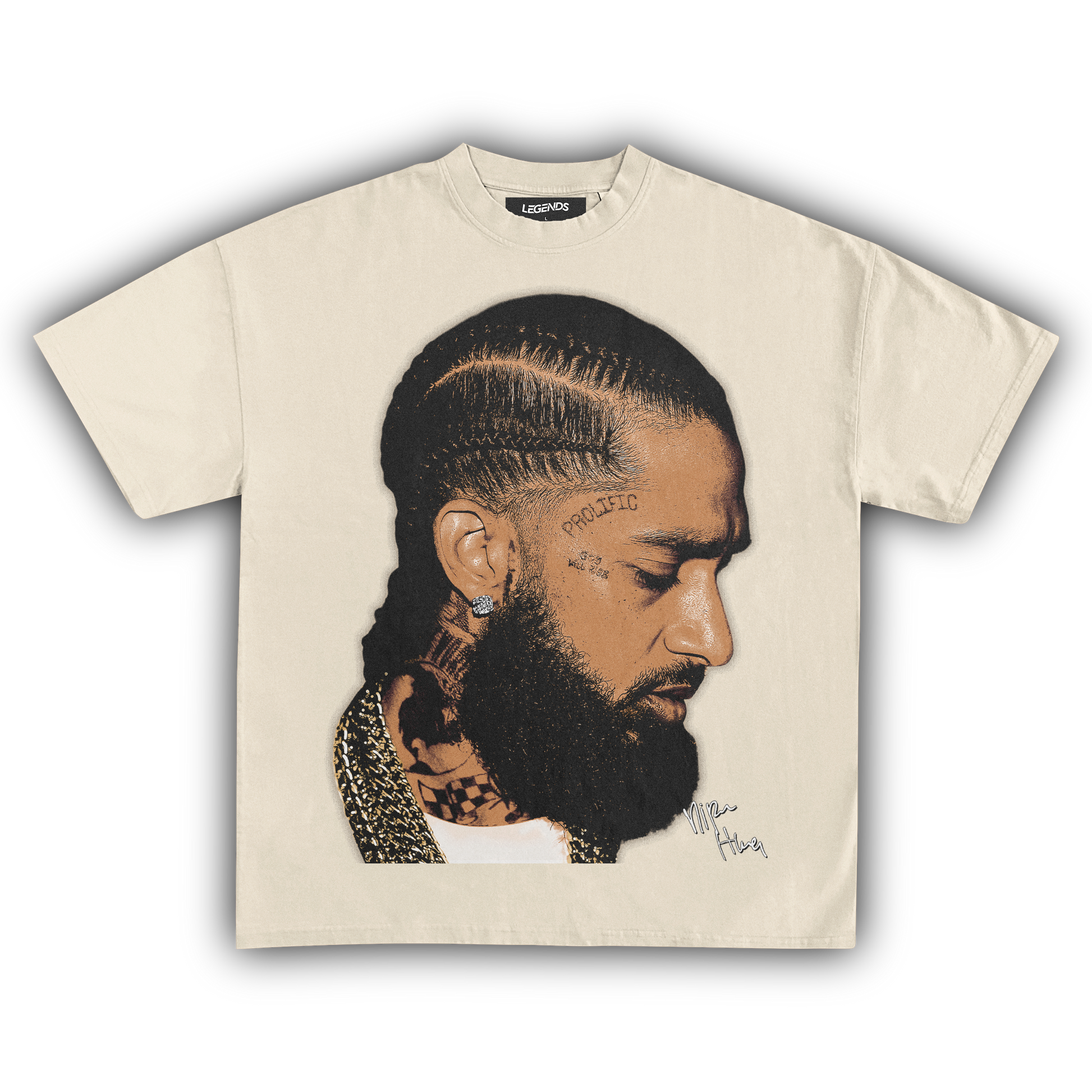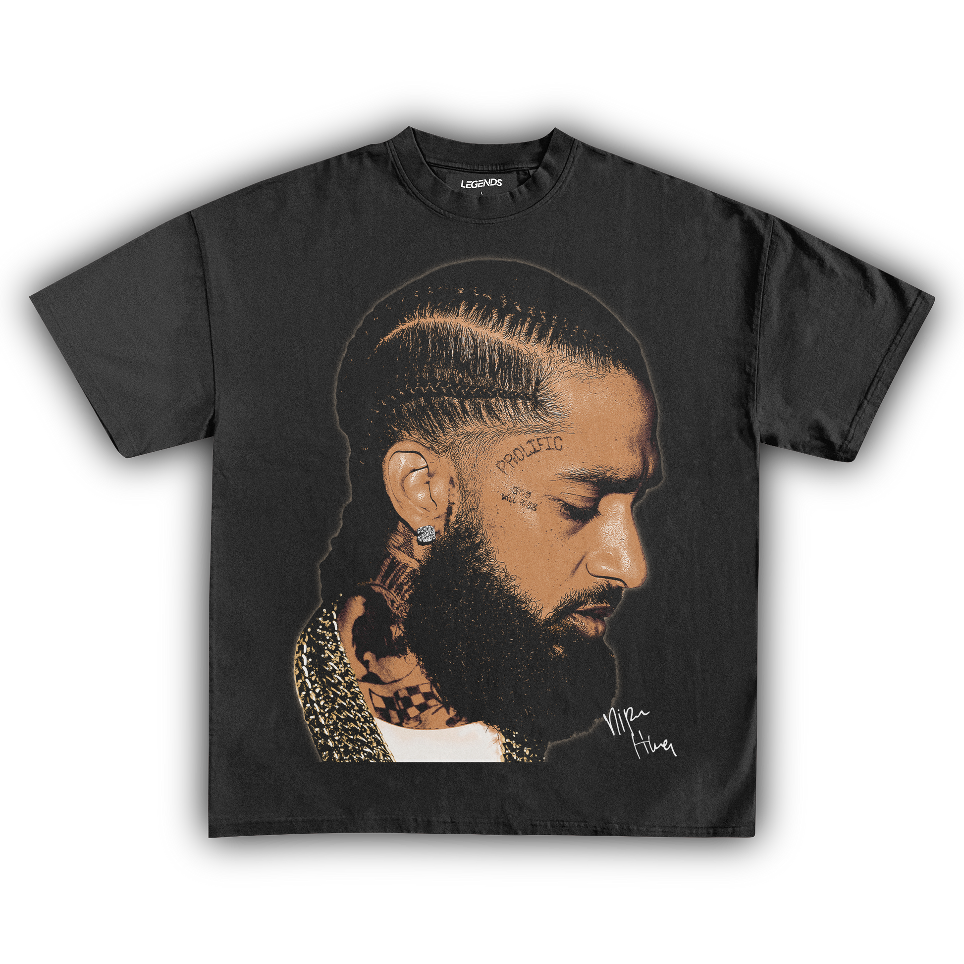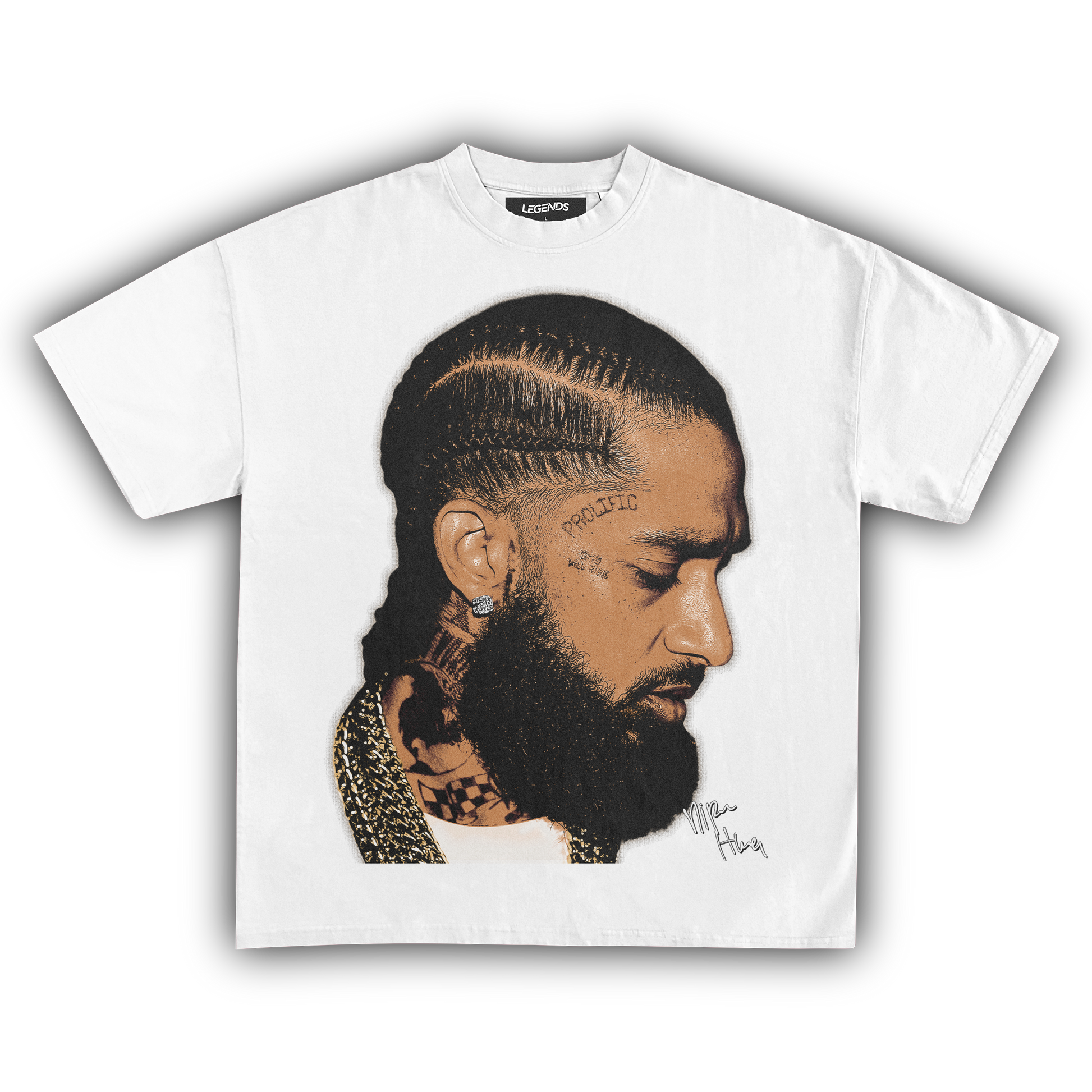 💎 Nipsey Hussle Gold Chains Tee: Pay homage to a true street legend with our Nipsey Hussle Gold Chains Tee. Nipsey's grind, legacy, and relentless pursuit of greatness are immortalized in this design, showcasing him draped in gold chains—a symbol of his success and street credibility. Made with heavyweight, 100% ring-spun cotton, this tee features a luxurious garment-dyed finish for that authentic vintage feel. The 1" thick collar and top-notch construction ensure it's as durable as it is stylish. Rock this tee and carry the spirit of Nipsey's hustle everywhere you go. 🏆