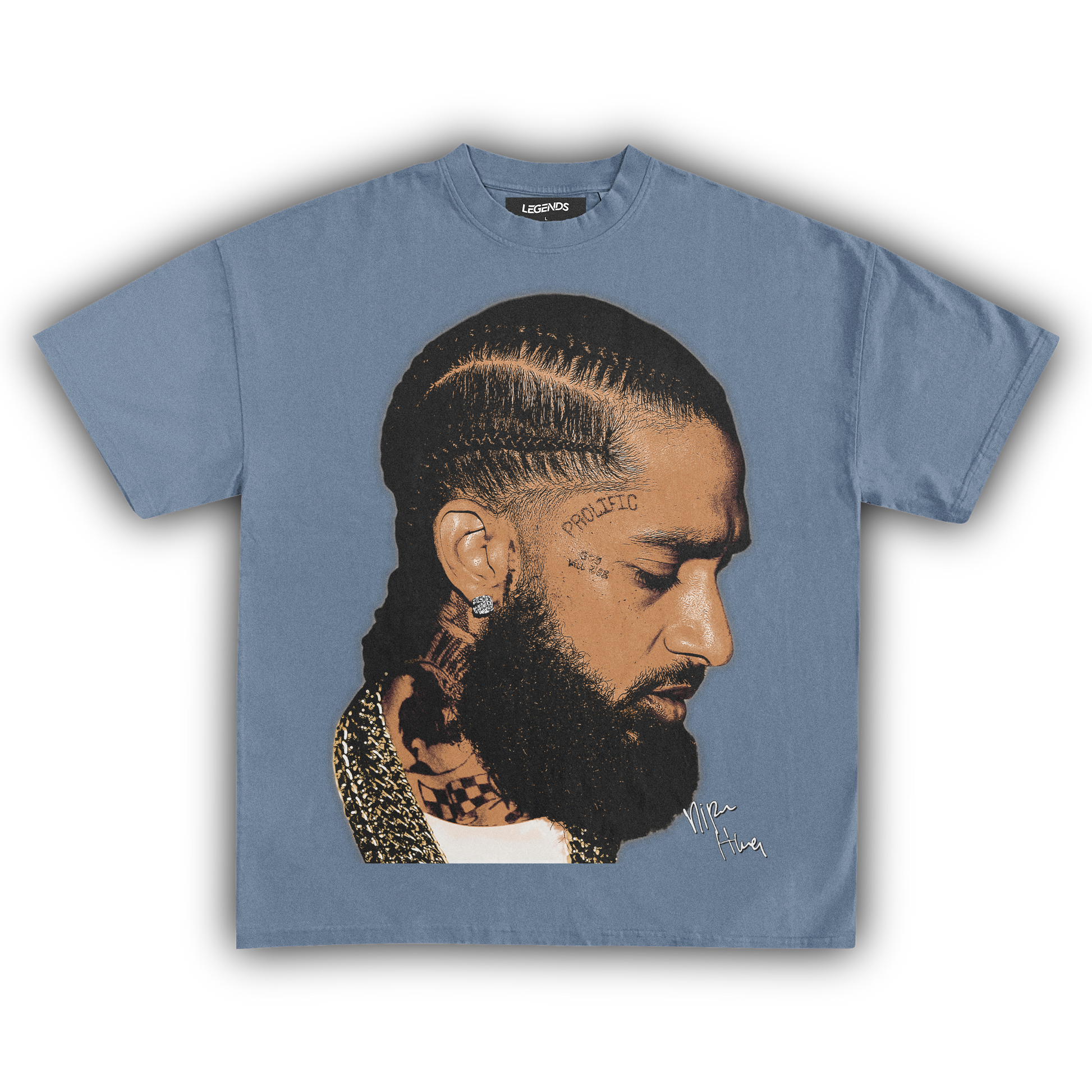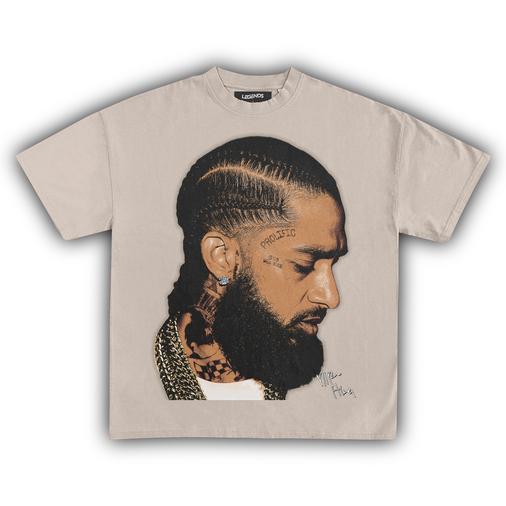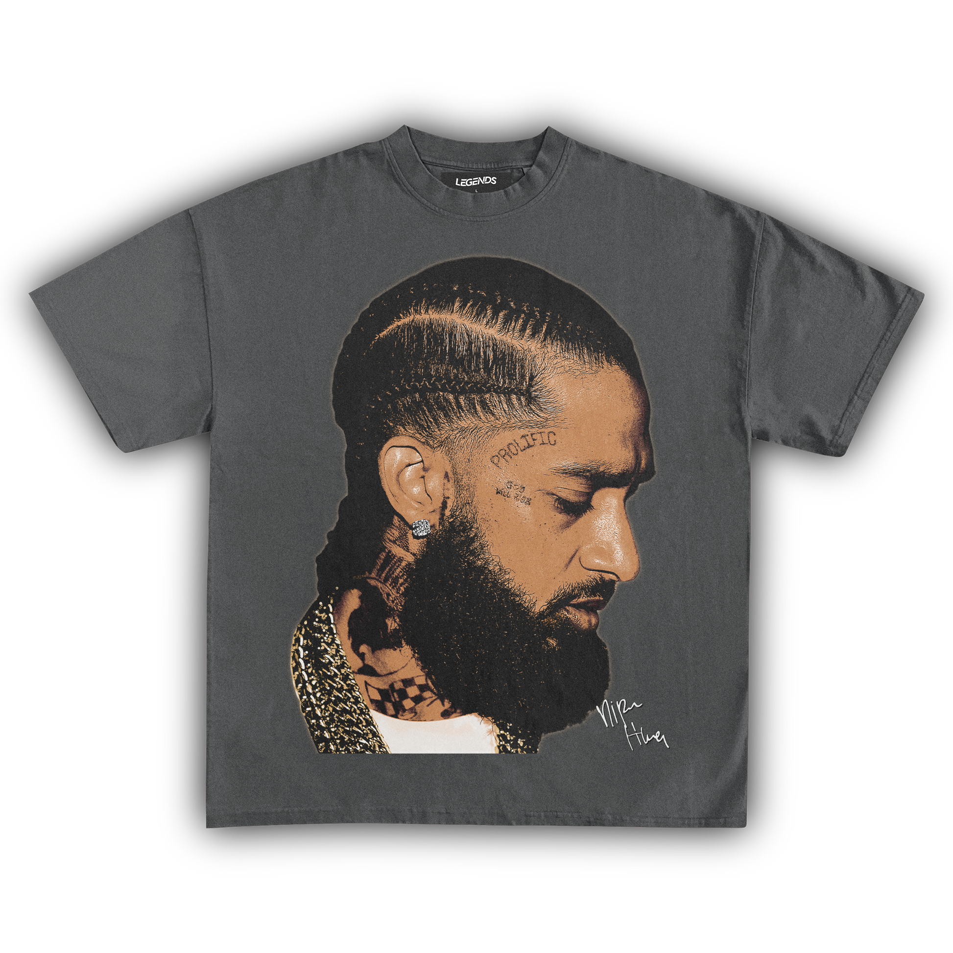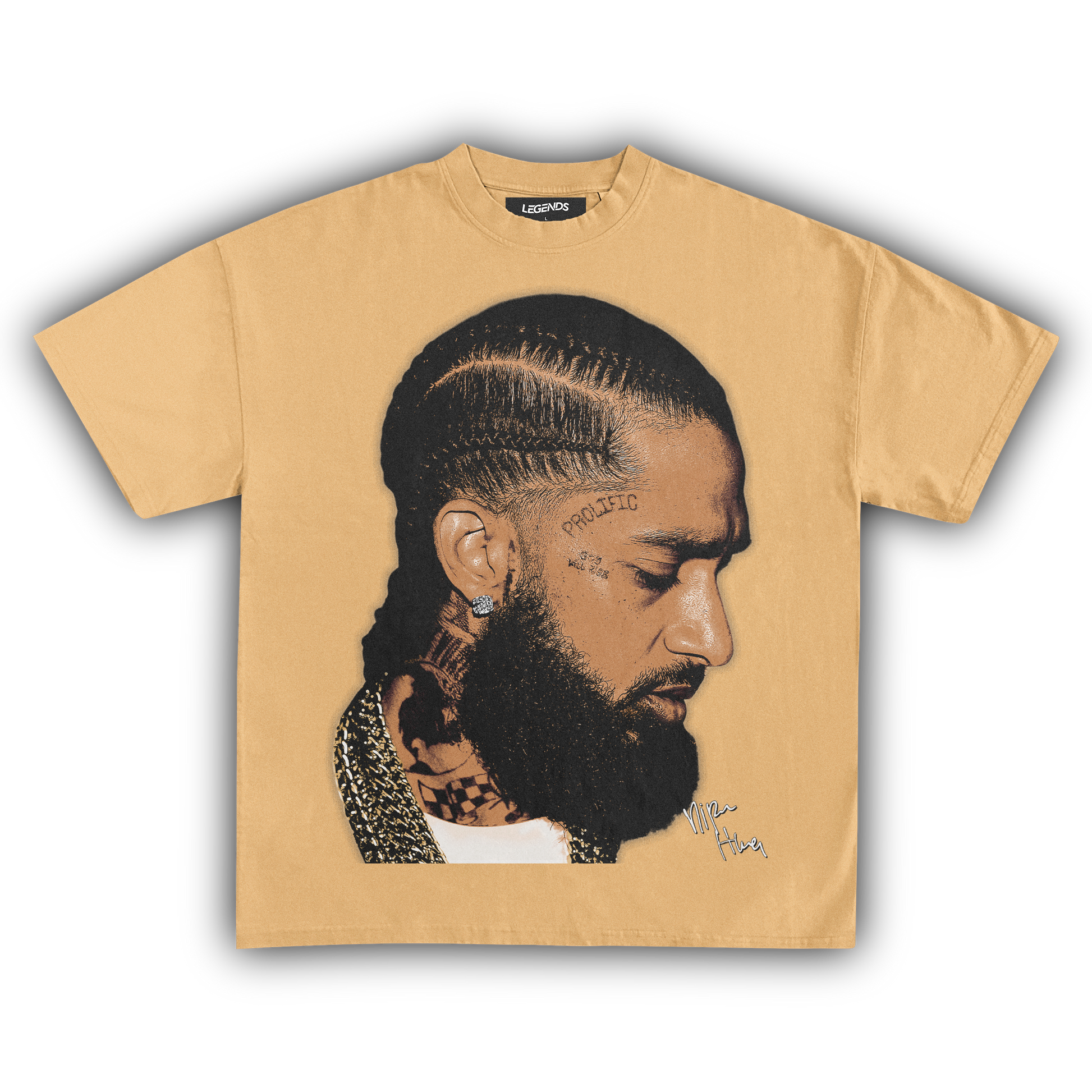 💎 Nipsey Hussle Gold Chains Tee: Pay homage to a true street legend with our Nipsey Hussle Gold Chains Tee. Nipsey's grind, legacy, and relentless pursuit of greatness are immortalized in this design, showcasing him draped in gold chains—a symbol of his success and street credibility. Made with heavyweight, 100% ring-spun cotton, this tee features a luxurious garment-dyed finish for that authentic vintage feel. The 1" thick collar and top-notch construction ensure it's as durable as it is stylish. Rock this tee and carry the spirit of Nipsey's hustle everywhere you go. 🏆