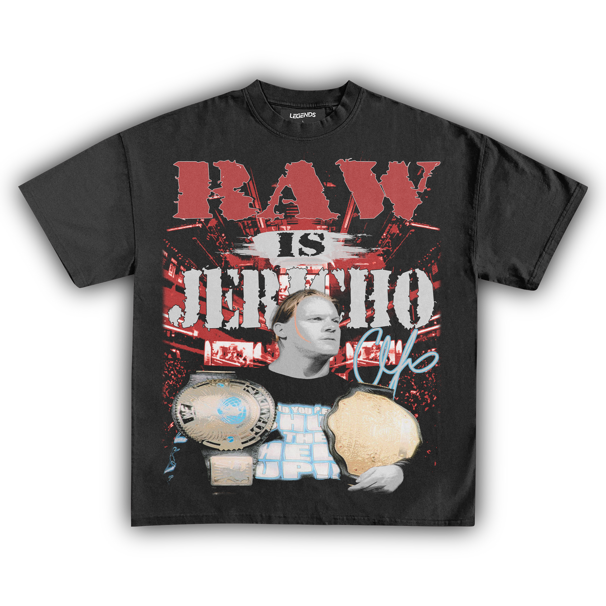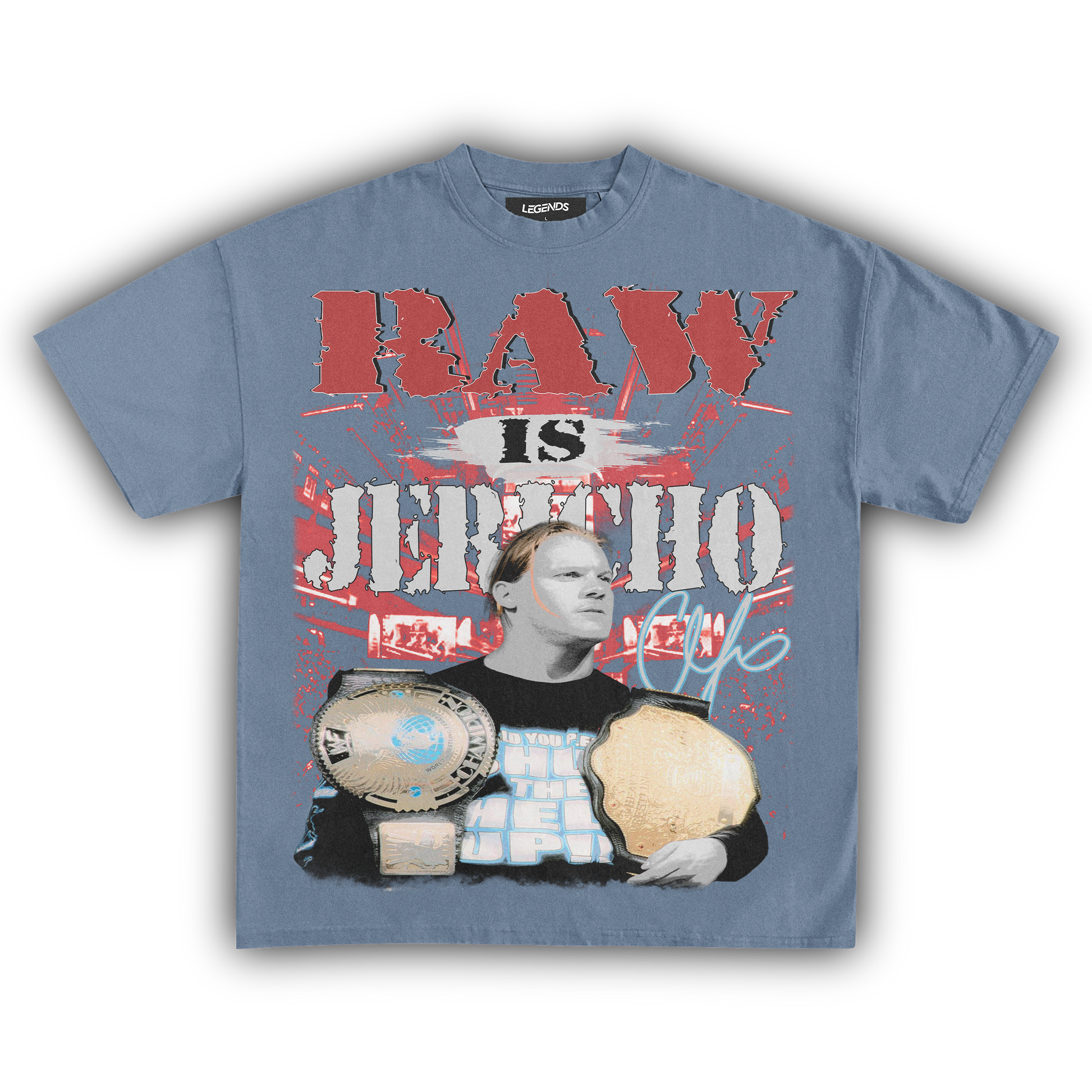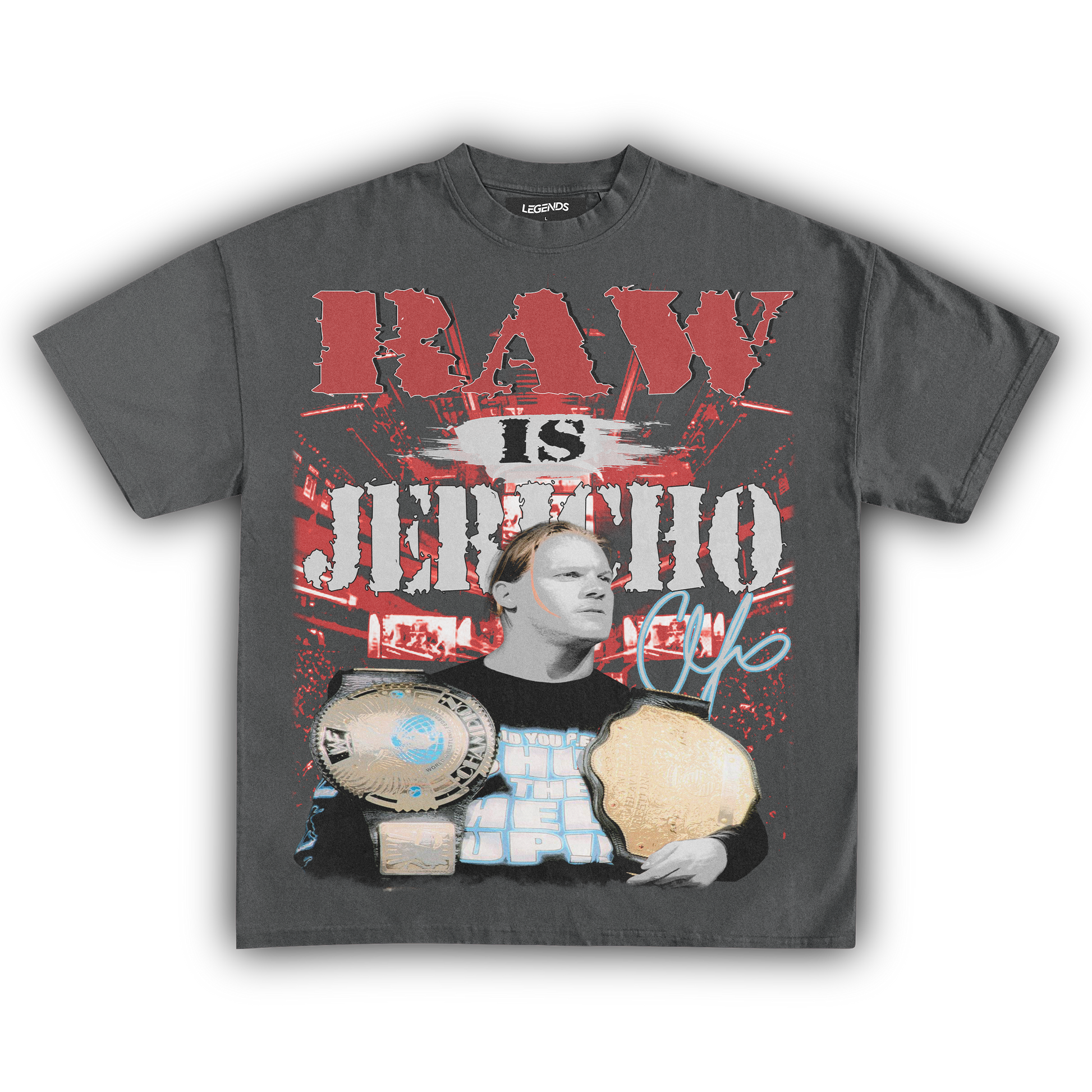 Unleash the Ayatollah of Rock 'n' Rolla with our RAW IS JERICHO Tee, a tribute to the legendary Chris Jericho. Known for his larger-than-life persona, unforgettable promos, and in-ring prowess, Jericho has carved his name in wrestling history. This tee captures that essence with a vintage-inspired design, made from 100% luxury ring-spun cotton, heavyweight 7.5 oz fabric, and a garment-dyed finish for that retro vibe. The 1" thick collar and heavyweight construction ensure it’s built to last, just like Jericho's legacy. Perfect for fans who want to break the walls down in style. 🤘