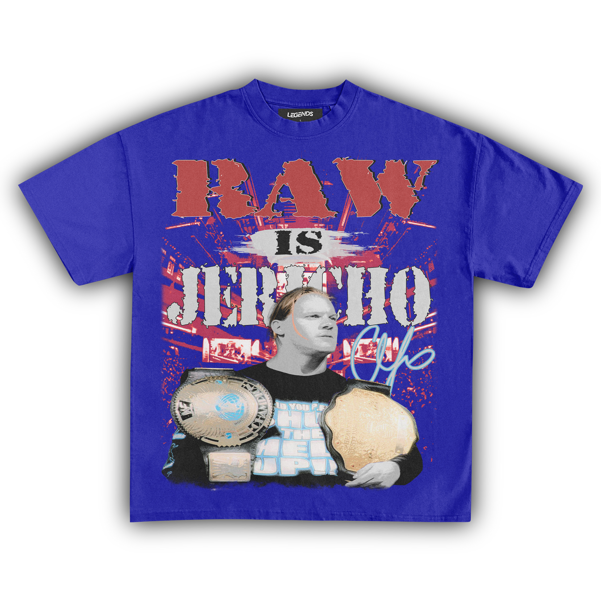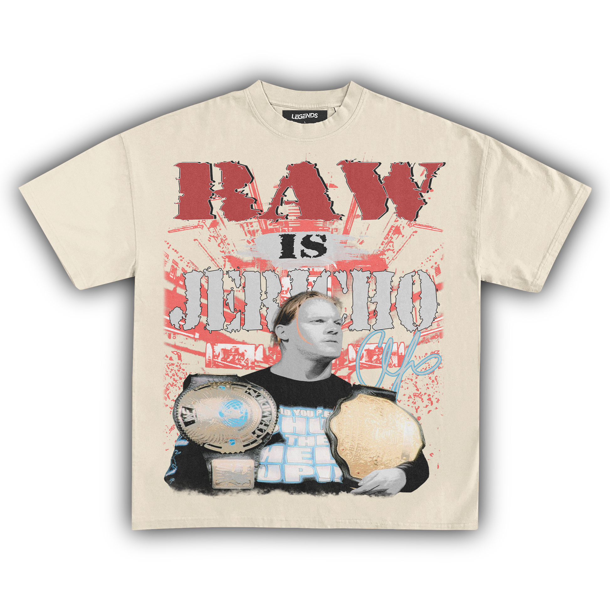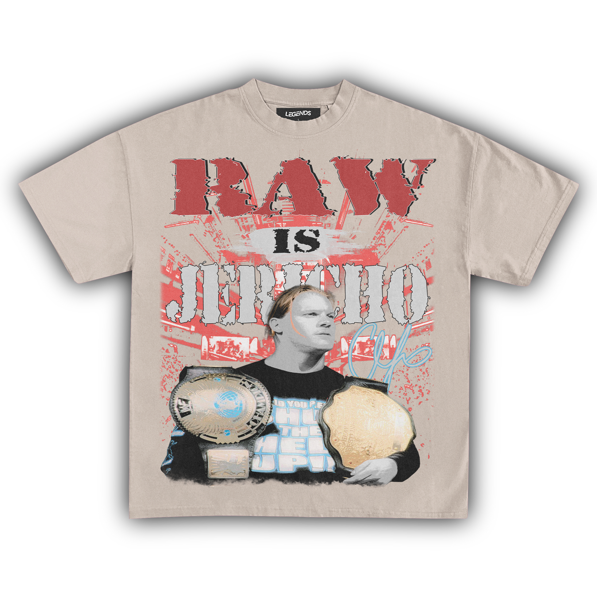 Unleash the Ayatollah of Rock 'n' Rolla with our RAW IS JERICHO Tee, a tribute to the legendary Chris Jericho. Known for his larger-than-life persona, unforgettable promos, and in-ring prowess, Jericho has carved his name in wrestling history. This tee captures that essence with a vintage-inspired design, made from 100% luxury ring-spun cotton, heavyweight 7.5 oz fabric, and a garment-dyed finish for that retro vibe. The 1" thick collar and heavyweight construction ensure it’s built to last, just like Jericho's legacy. Perfect for fans who want to break the walls down in style. 🤘
