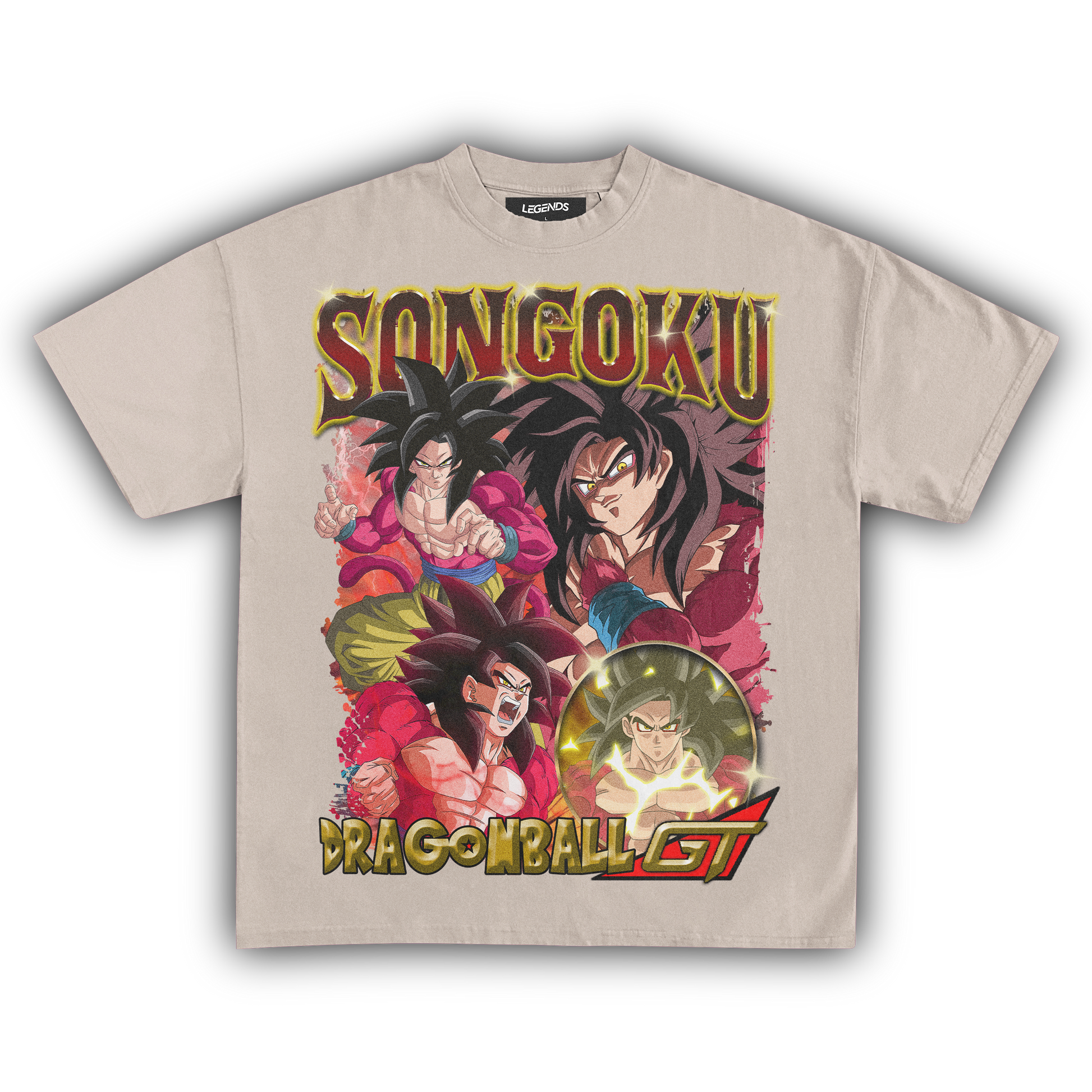Channel your inner Saiyan with our Songoku Dragon Ball Z GT Tee. This shirt is a must-have for any Dragon Ball fan, featuring the legendary Songoku from the GT series in a vintage-inspired graphic. Crafted from heavyweight 7.5 oz fabric, it’s built to last while providing top-notch comfort. The garment-dyed fabric gives it a retro feel, and the 1" thick collar adds a classic streetwear touch. The oversized relaxed fit and super high-quality DTG print ensure you look fresh while showcasing Songoku’s iconic style. Perfect for repping your favorite anime or just chilling with some serious swagger.
