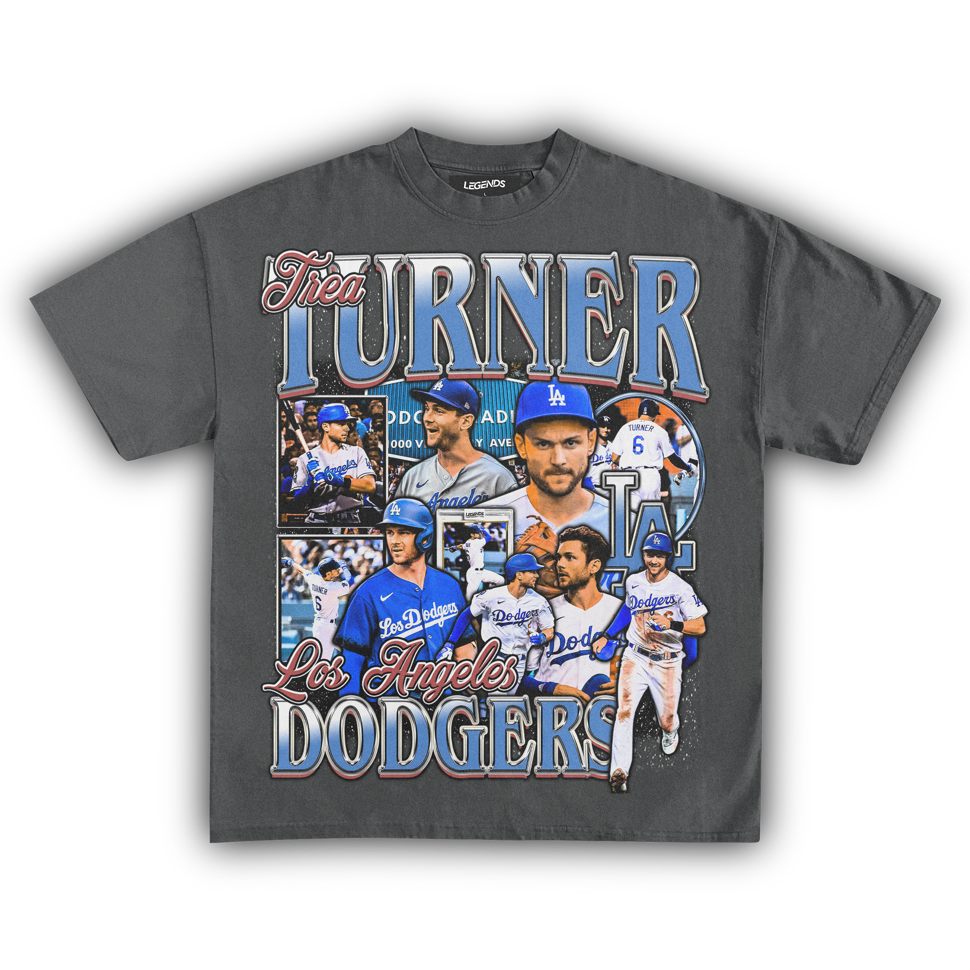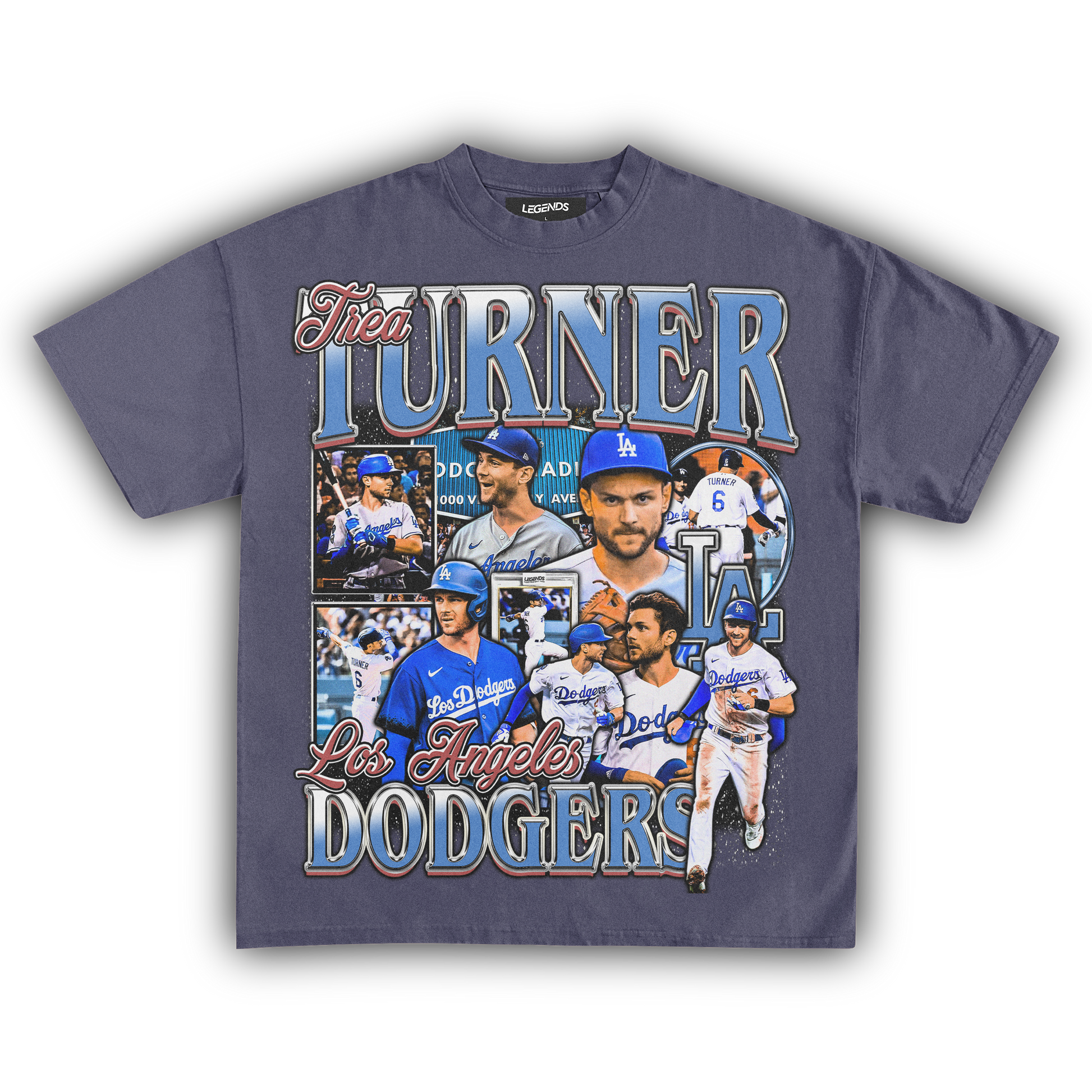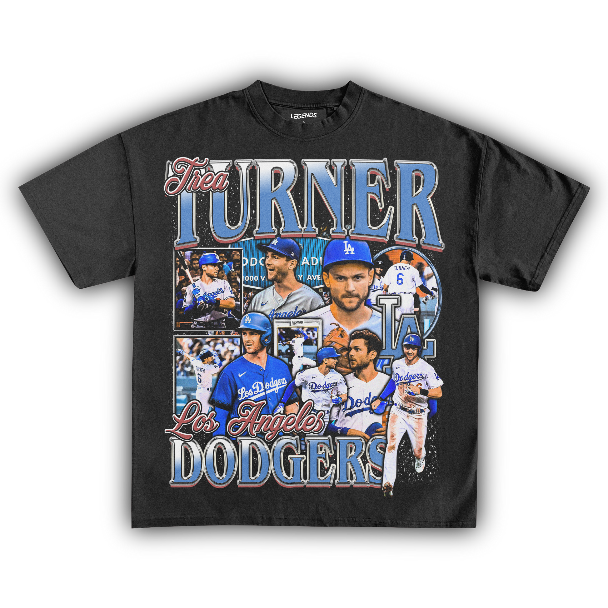 🔥 Trea Turner Dodgers Tee: Step into the batter's box with the speed and precision of Trea Turner himself in our Dodgers Tee. Representing the Los Angeles Dodgers, this tee pays homage to Turner's explosive talent on the diamond. With lightning-fast reflexes and unmatched agility, Turner dominates the basepaths and the field alike. Crafted from premium heavyweight fabric, this tee combines comfort with durability, ensuring you stay in the game from the first pitch to the final out. Channel the energy of Turner and unleash your own winning streak with this legendary tee.