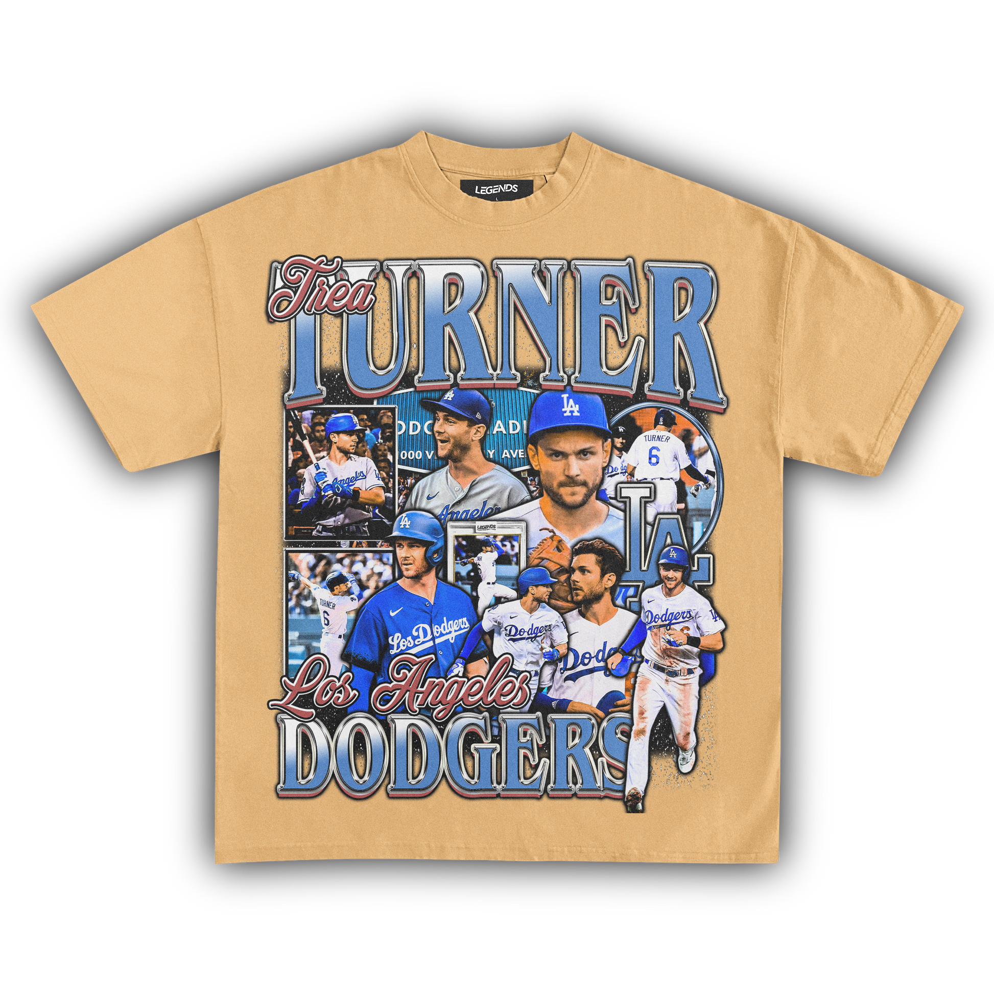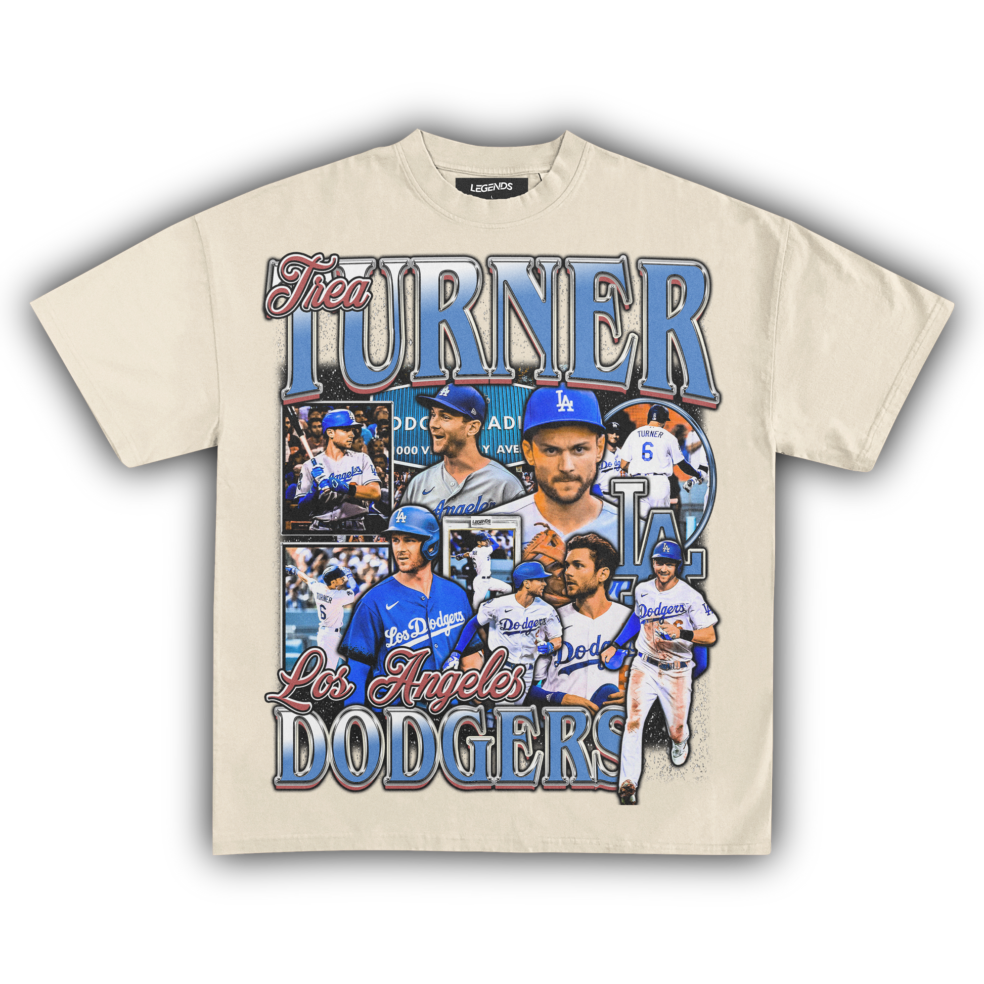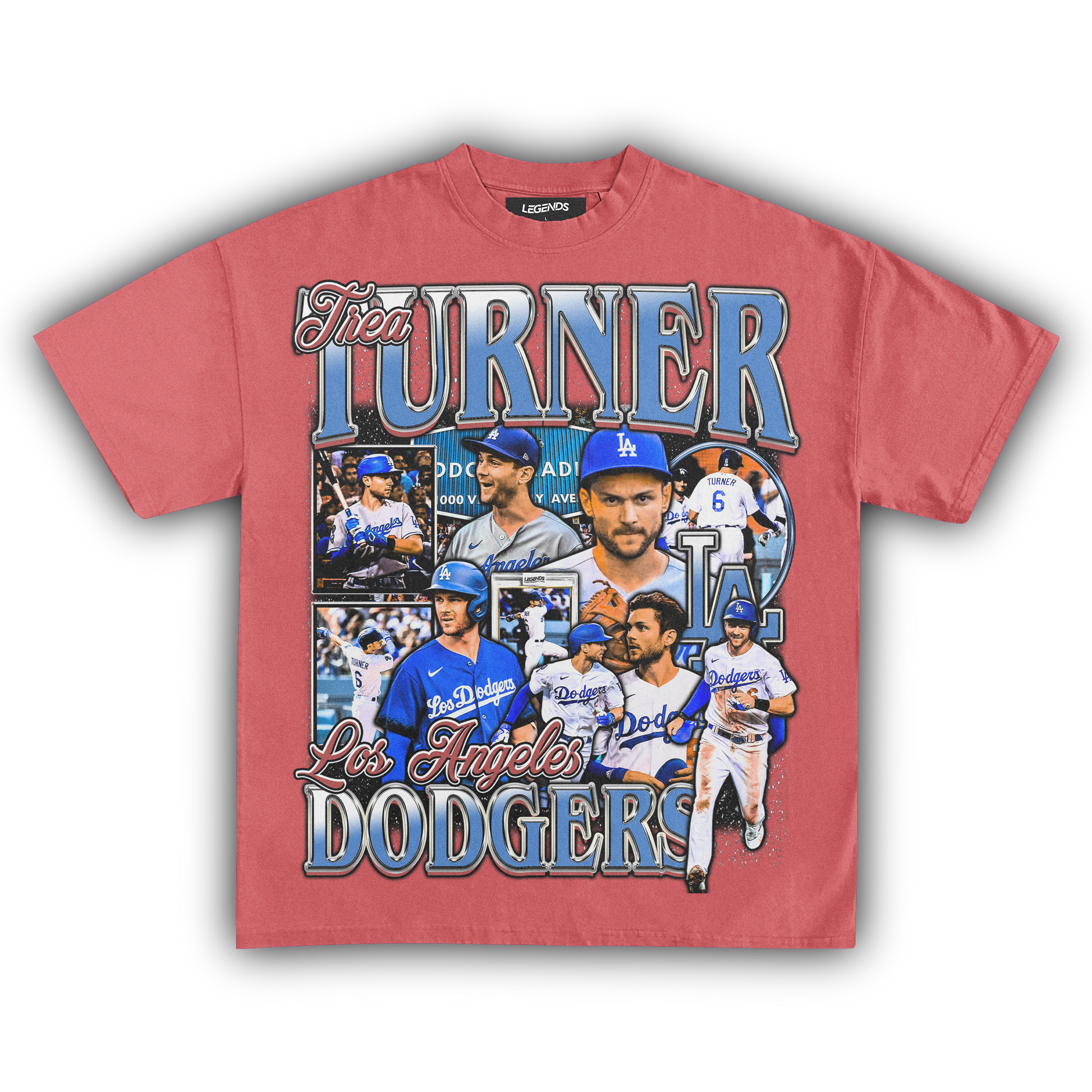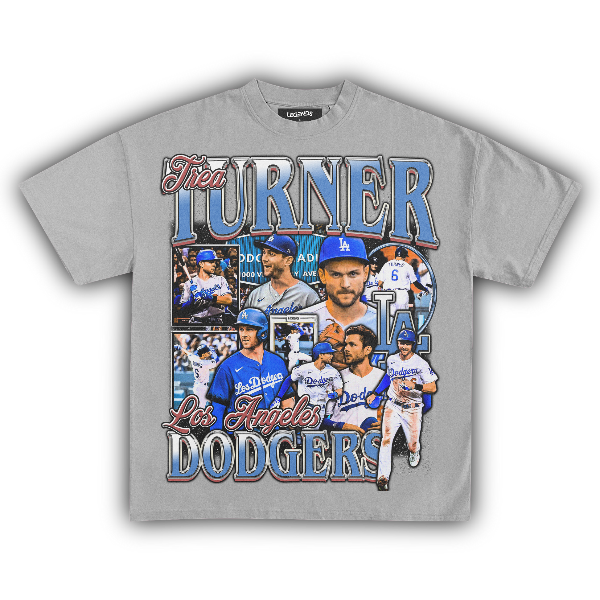 🔥 Trea Turner Dodgers Tee: Step into the batter's box with the speed and precision of Trea Turner himself in our Dodgers Tee. Representing the Los Angeles Dodgers, this tee pays homage to Turner's explosive talent on the diamond. With lightning-fast reflexes and unmatched agility, Turner dominates the basepaths and the field alike. Crafted from premium heavyweight fabric, this tee combines comfort with durability, ensuring you stay in the game from the first pitch to the final out. Channel the energy of Turner and unleash your own winning streak with this legendary tee.