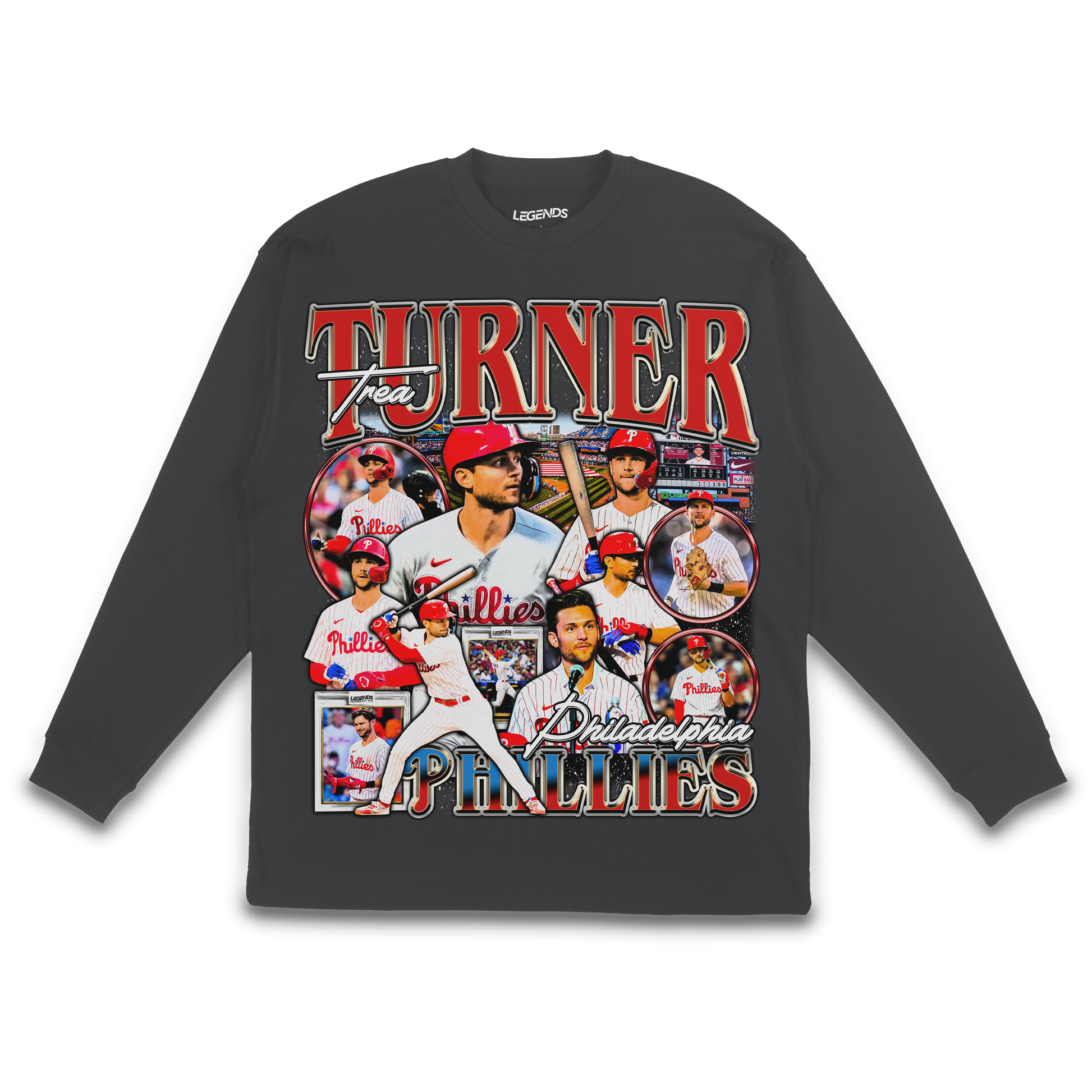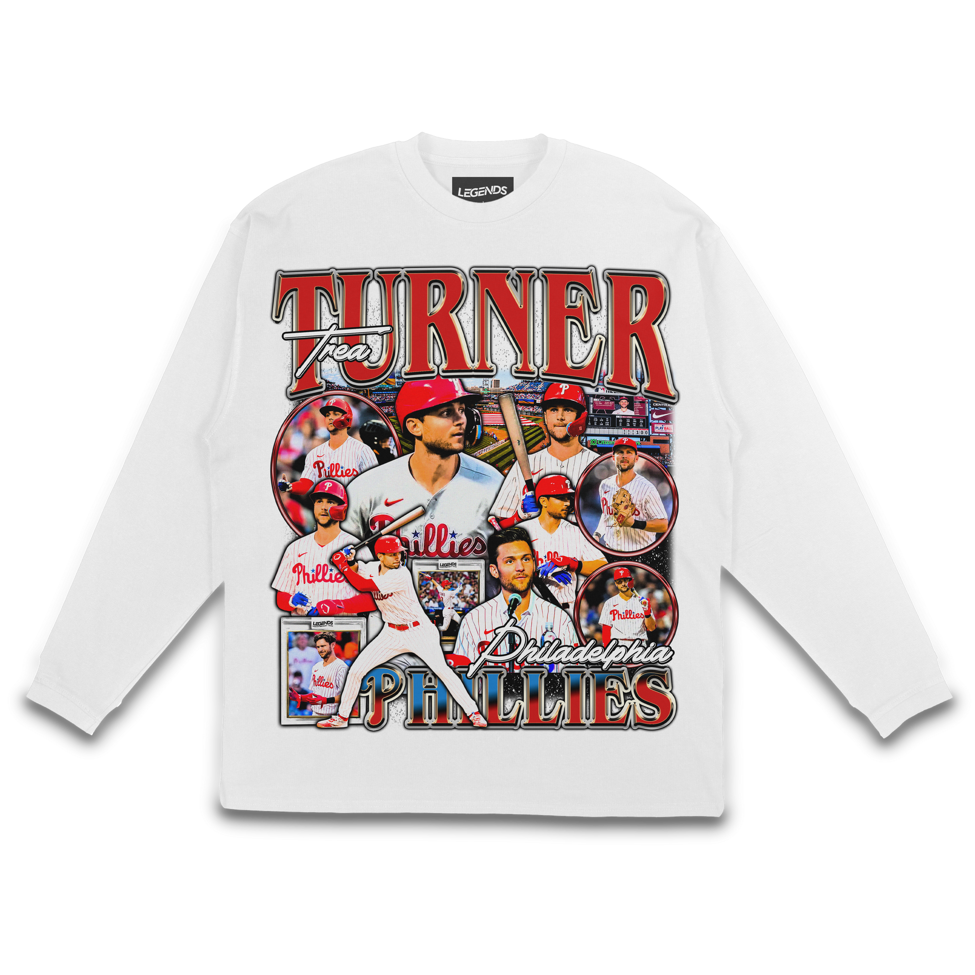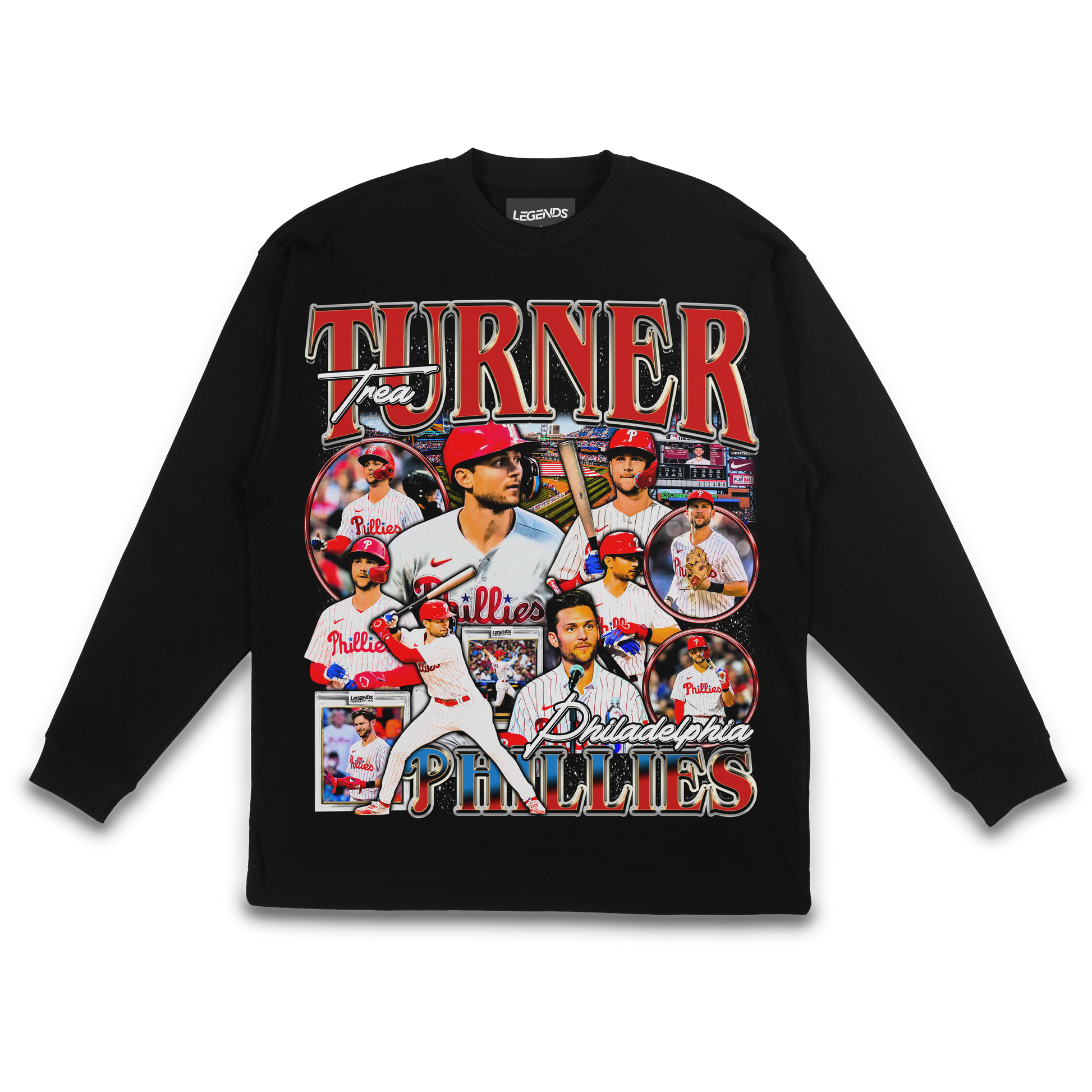 Why This Tee Is Your Streetwear Grand Slam: The Trea Turner Phillies Legend Long Sleeve Tee ain't just about repping the Phillies; it's about embodying the swag of a baseball maverick. With heavyweight swagger and Trea Turner attitude, this long sleeve is a must-have for those who live and breathe Philly pride. When you rock this tee, you're not just flaunting; you're dominating the streets, making every day a grand slam. Elevate your streetwear game to ground zero and let this tee be your Phillies street anthem.