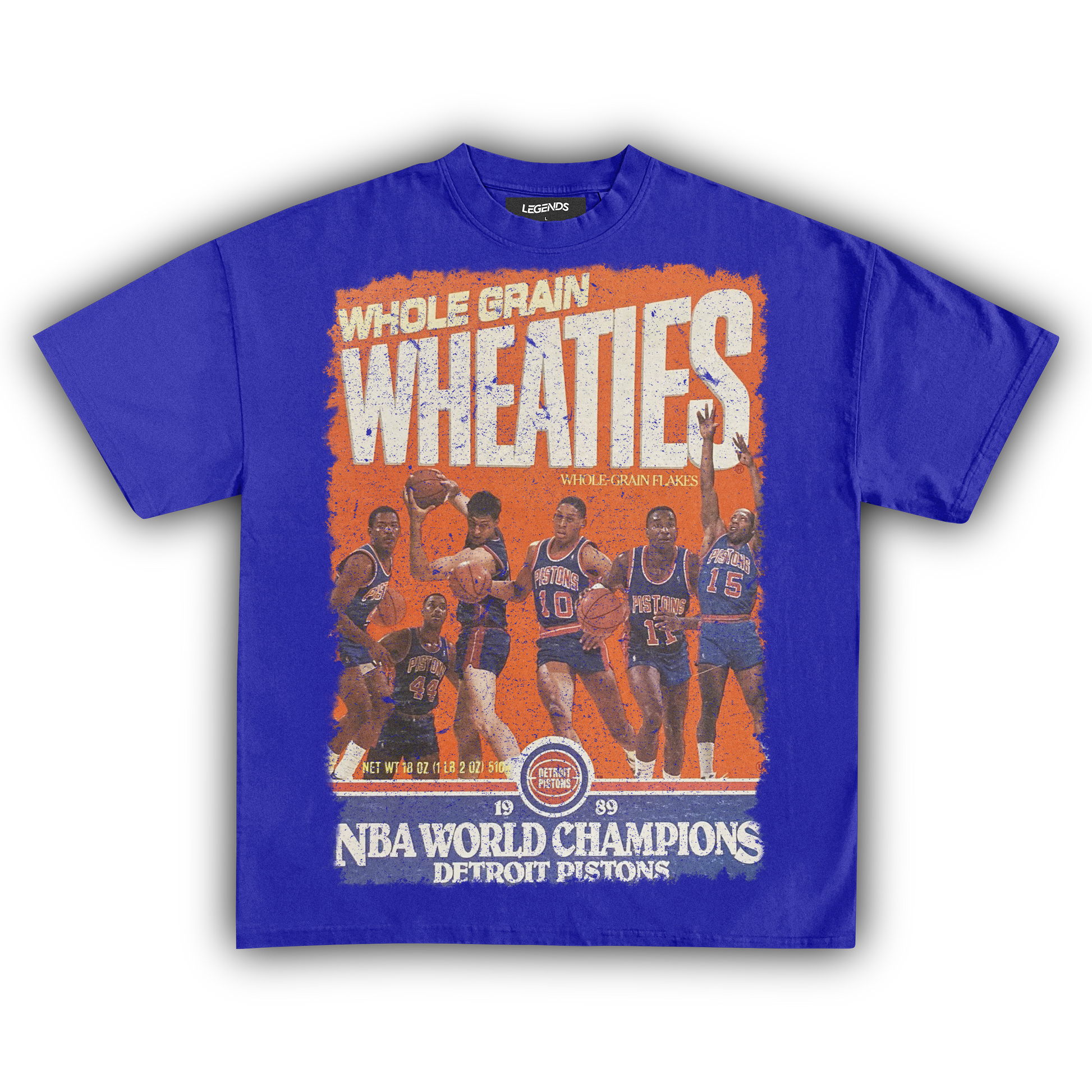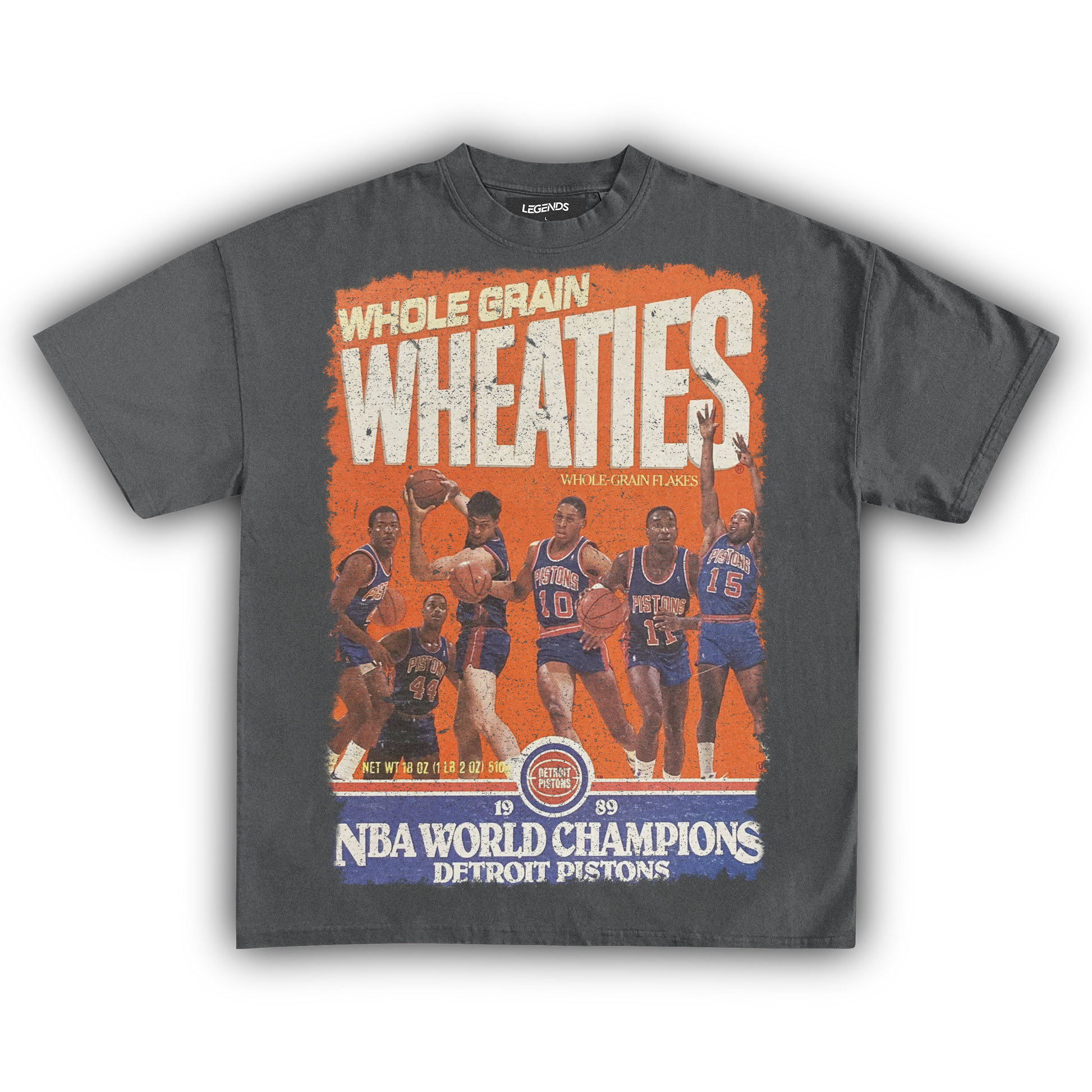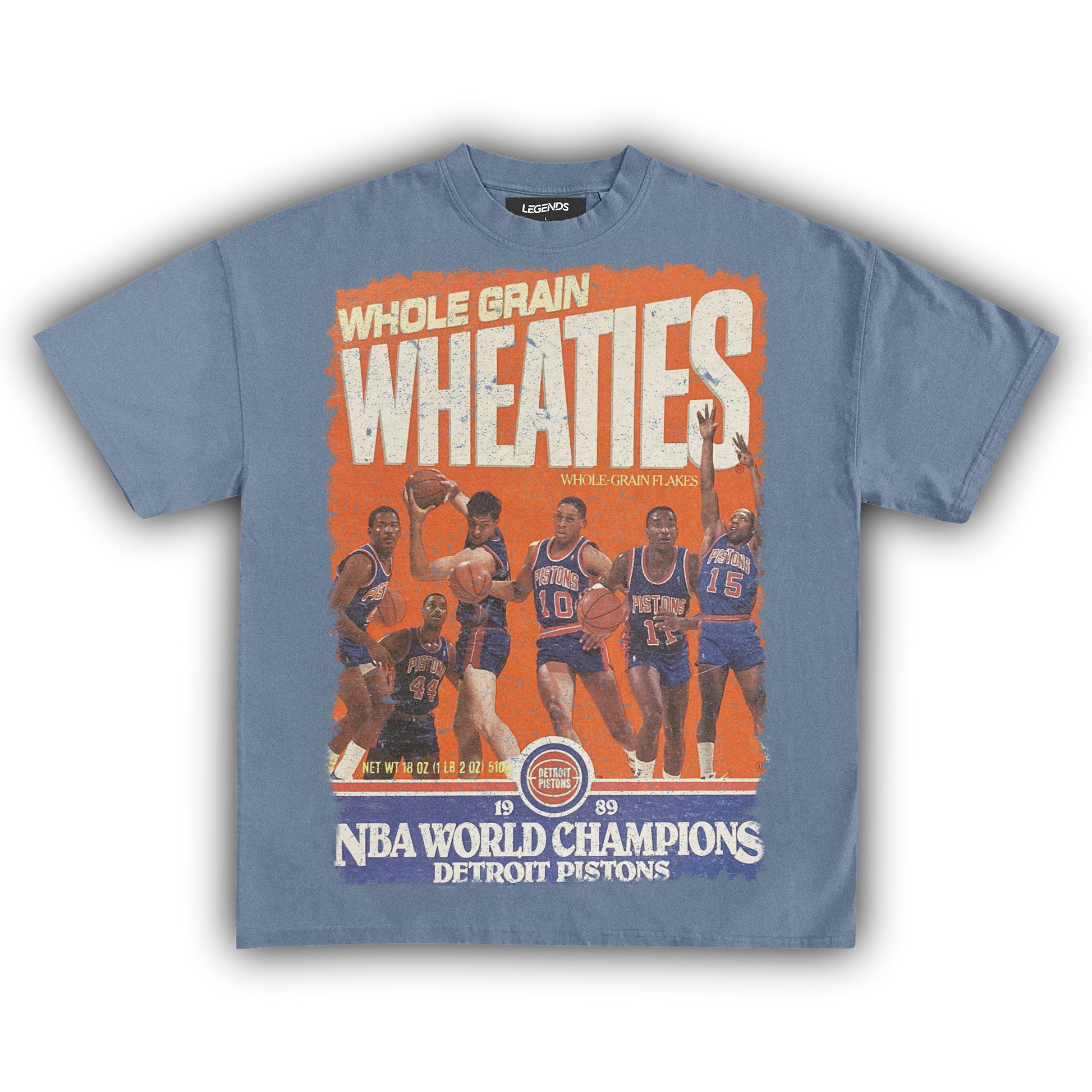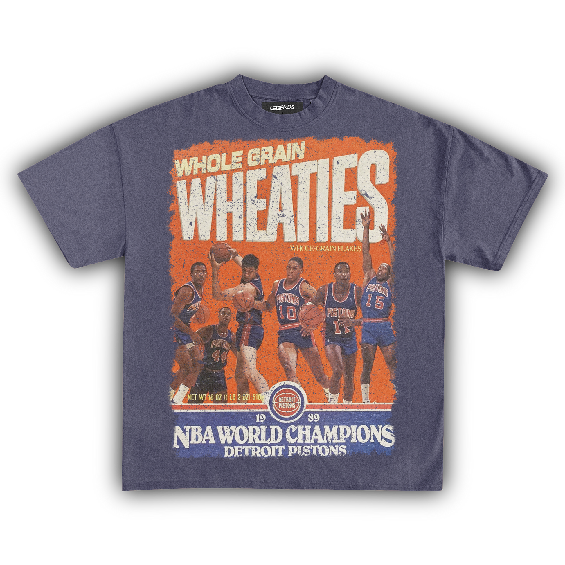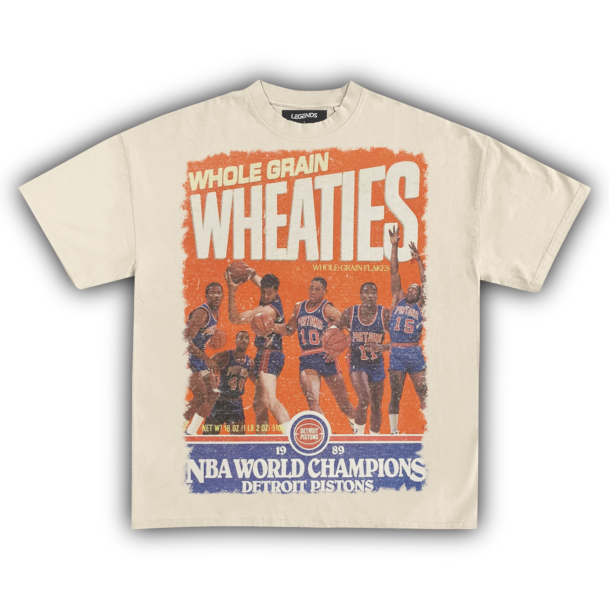 Show some love for the Detroit Pistons’ 1989 championship with our Wheaties Detroit Pistons 1989 Vintage Tee. This shirt flaunts the classic Wheaties box cover from that epic year, celebrating the Pistons' fierce dominance in the NBA. Crafted from heavyweight 7.5 oz fabric, this tee combines durability with a vintage vibe, featuring a garment-dyed finish for that authentic retro feel. The 1" thick collar and oversized relaxed fit bring a touch of streetwear swagger, while the high-quality DTG print ensures the Pistons' 1989 triumph stands out. Wear it to salute the "Bad Boys" era with a tee that’s as legendary as their game.